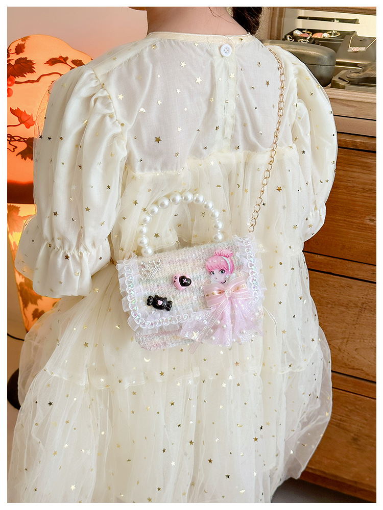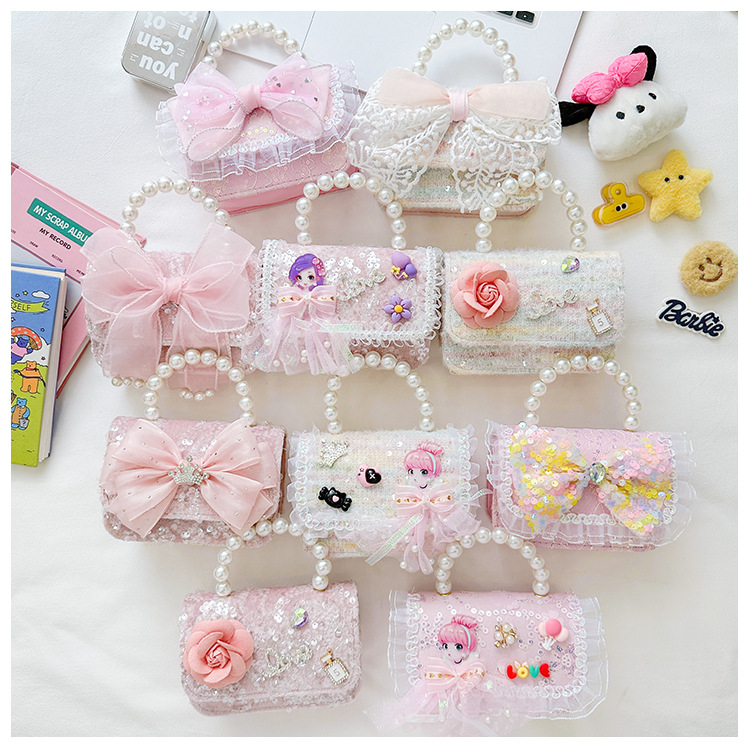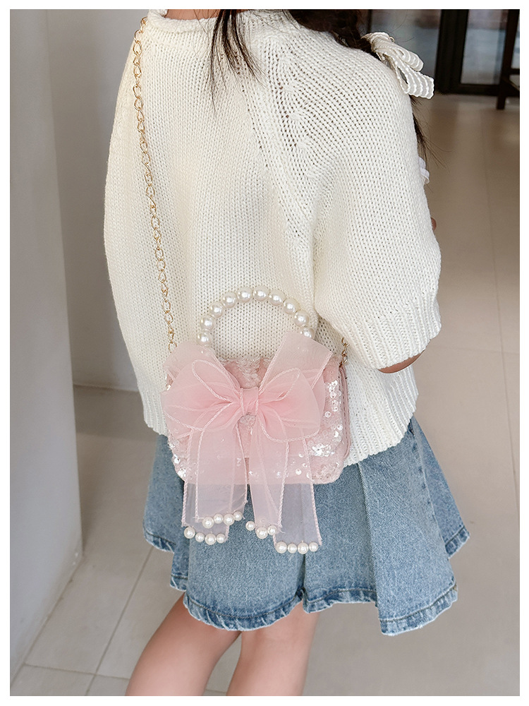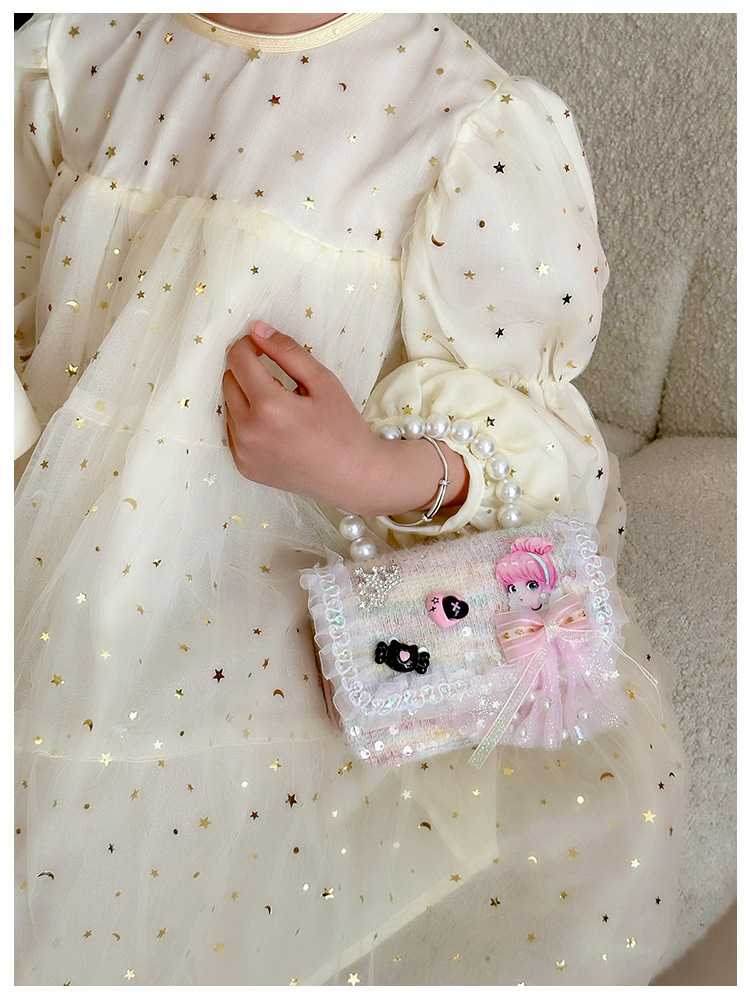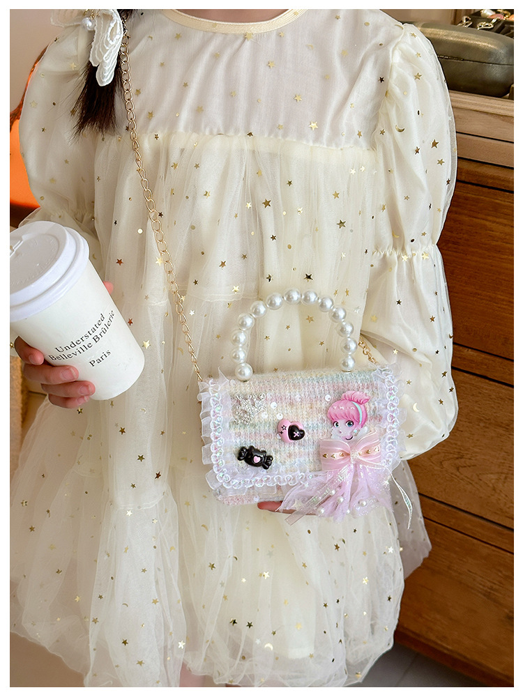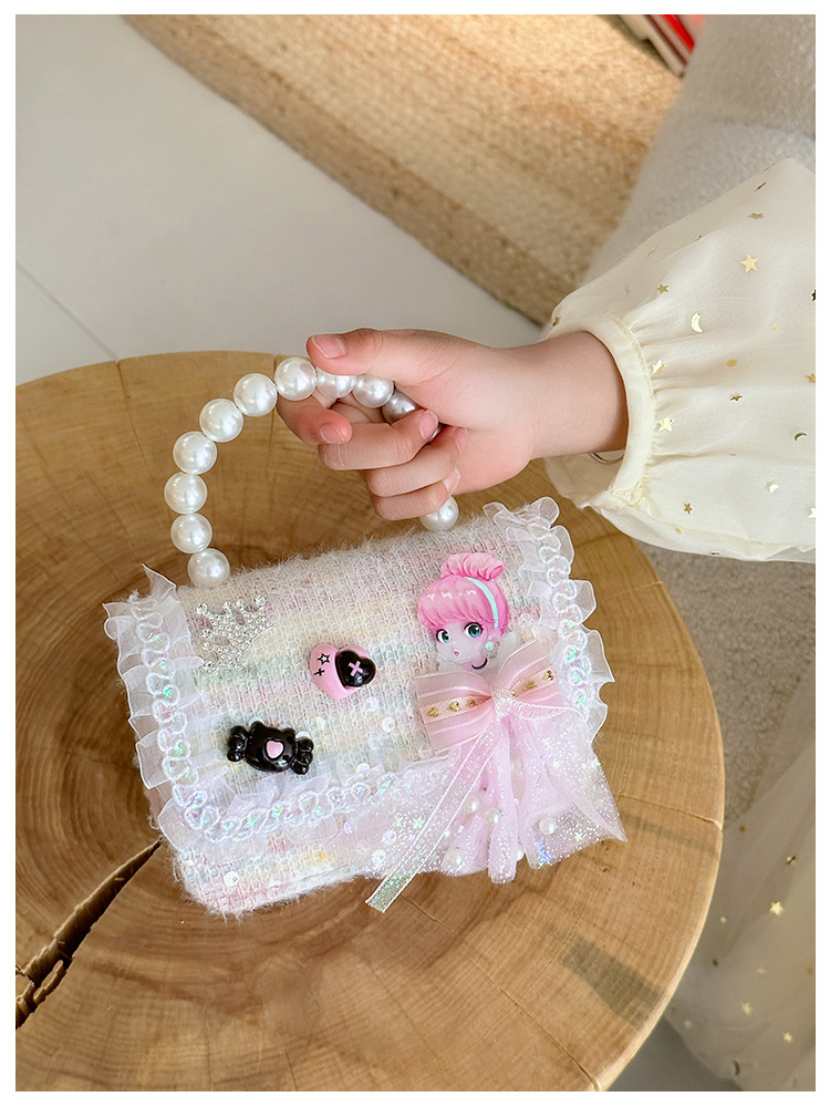 Nuevo bolso infantil de moda de otoño bolso de mochila para chicas bolso portátil de perlas princesa pequeña fragancia bolso de cambio al por mayor