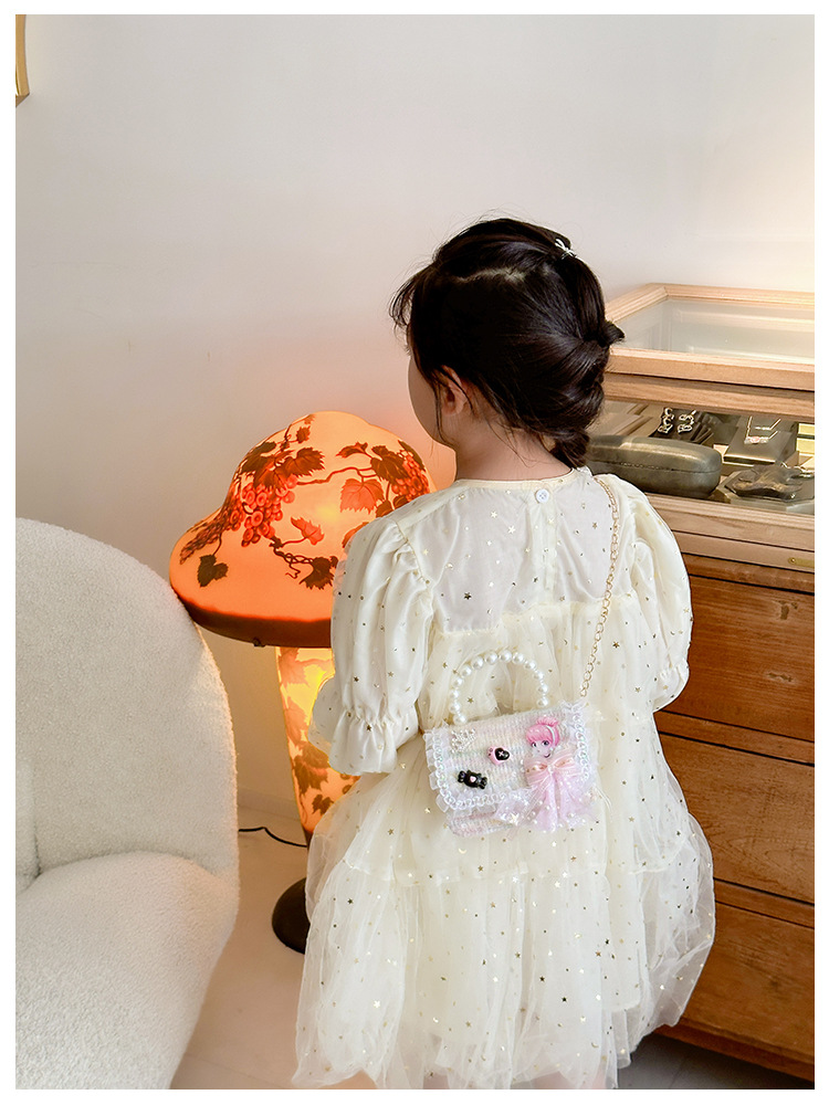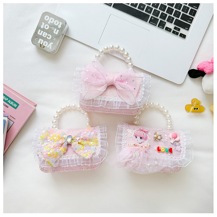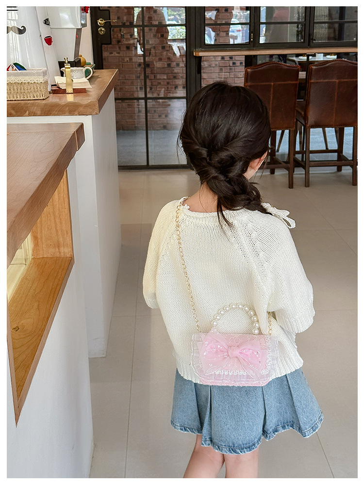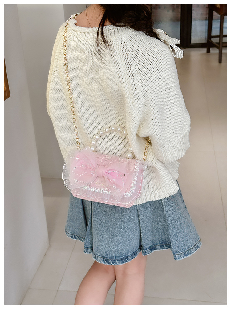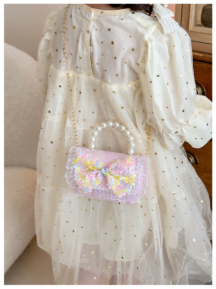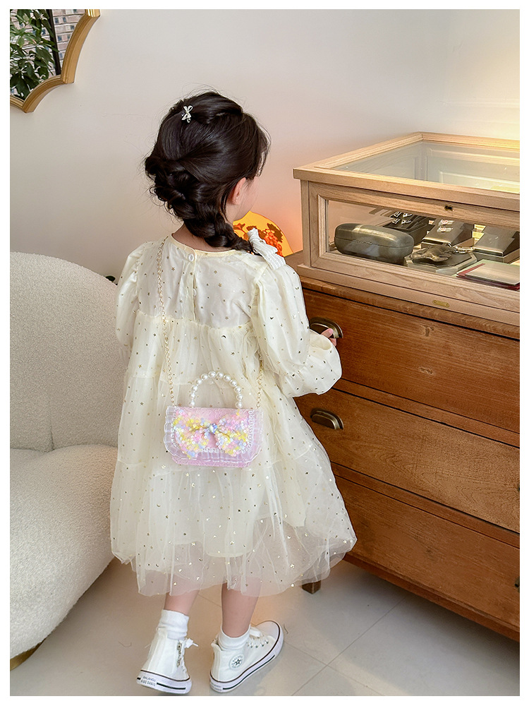 Nuevo bolso infantil de moda de otoño bolso de mochila para chicas bolso portátil de perlas princesa pequeña fragancia bolso de cambio al por mayor