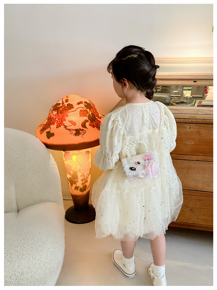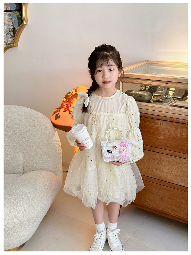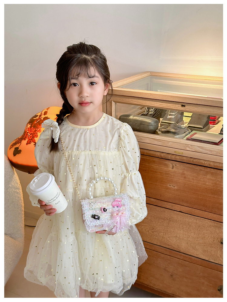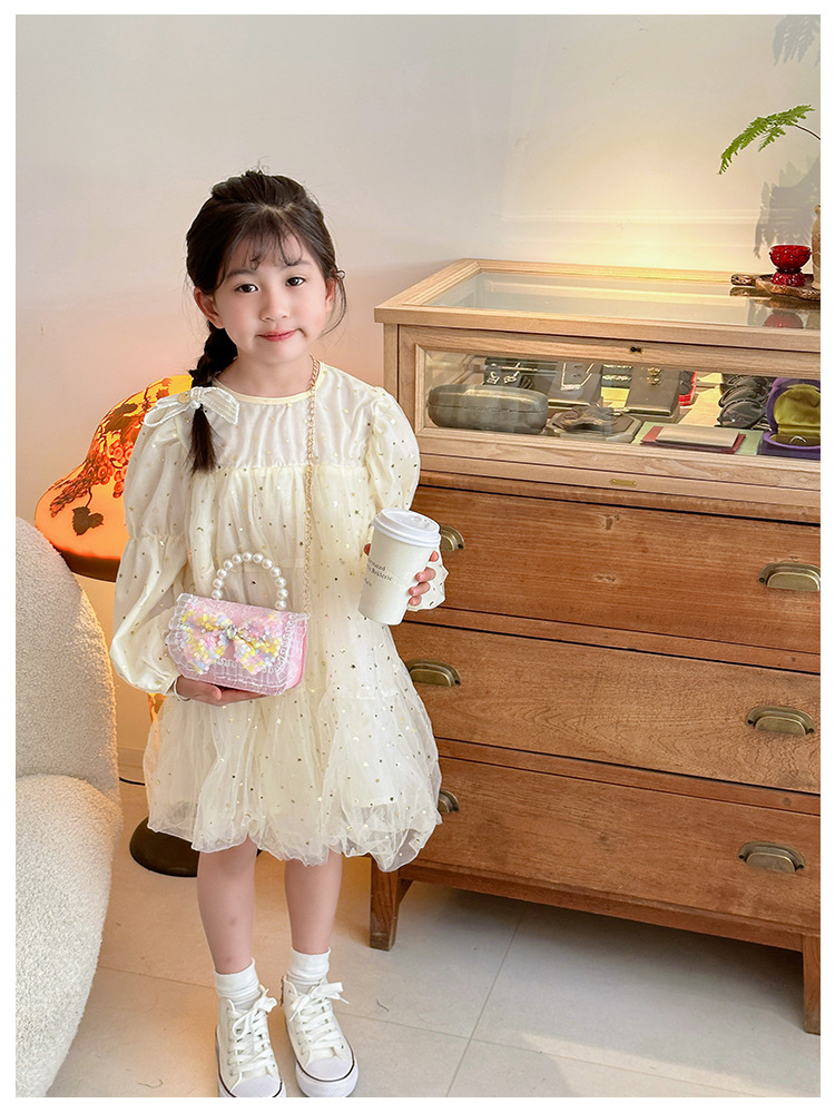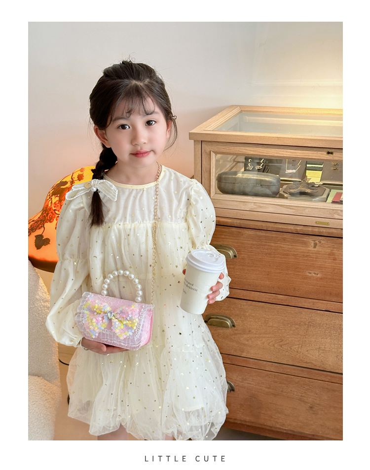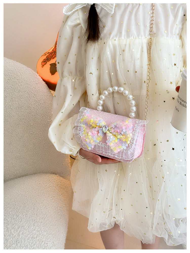 Nuevo bolso infantil de moda de otoño bolso de mochila para chicas bolso portátil de perlas princesa pequeña fragancia bolso de cambio al por mayor