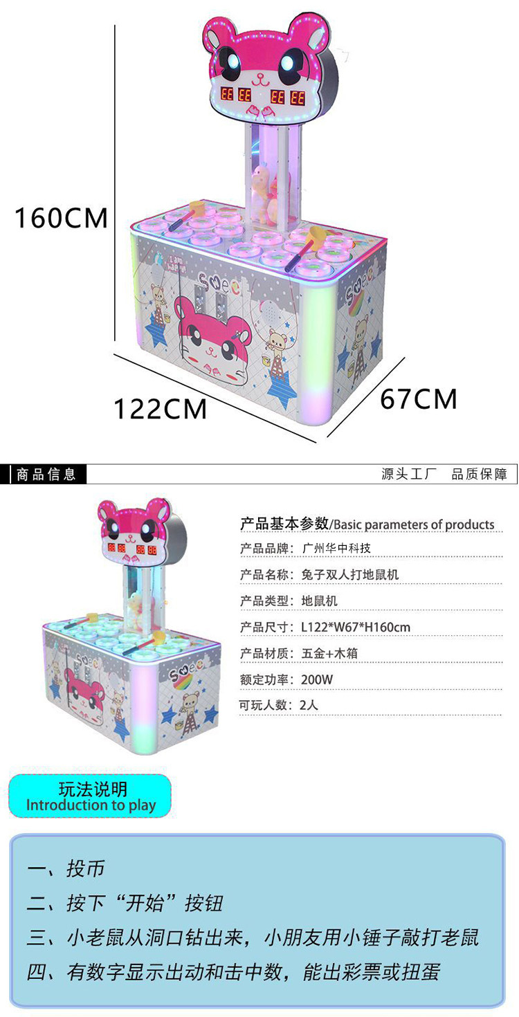 Máquina de juego para niños dobles golpeando martillo golpeando juego de monedas de juego de ciudad de juego de video para centro comercial interior
