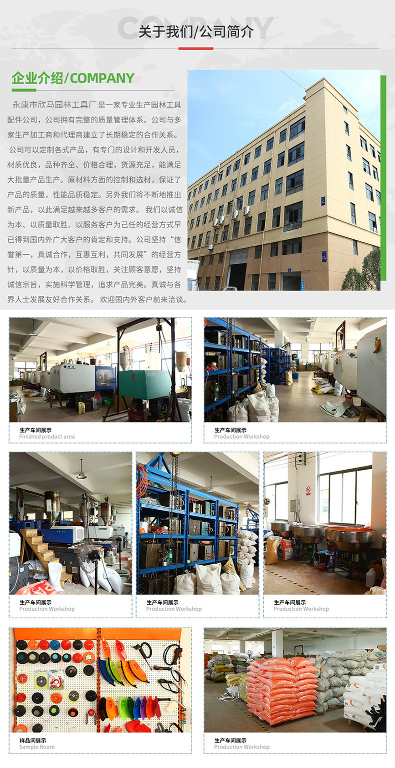 | Especificaciones | Cabeza de hierro, cabeza de aluminio grueso, cabeza de aluminio de ocho agujeros, cabeza de disco de aluminio, cabeza de disco de hierro especial para cortadora de césped eléctrica de litio, cabeza de césped T35, cabeza de césped rápida, cabeza de césped de aluminio + 20 cuerda |
