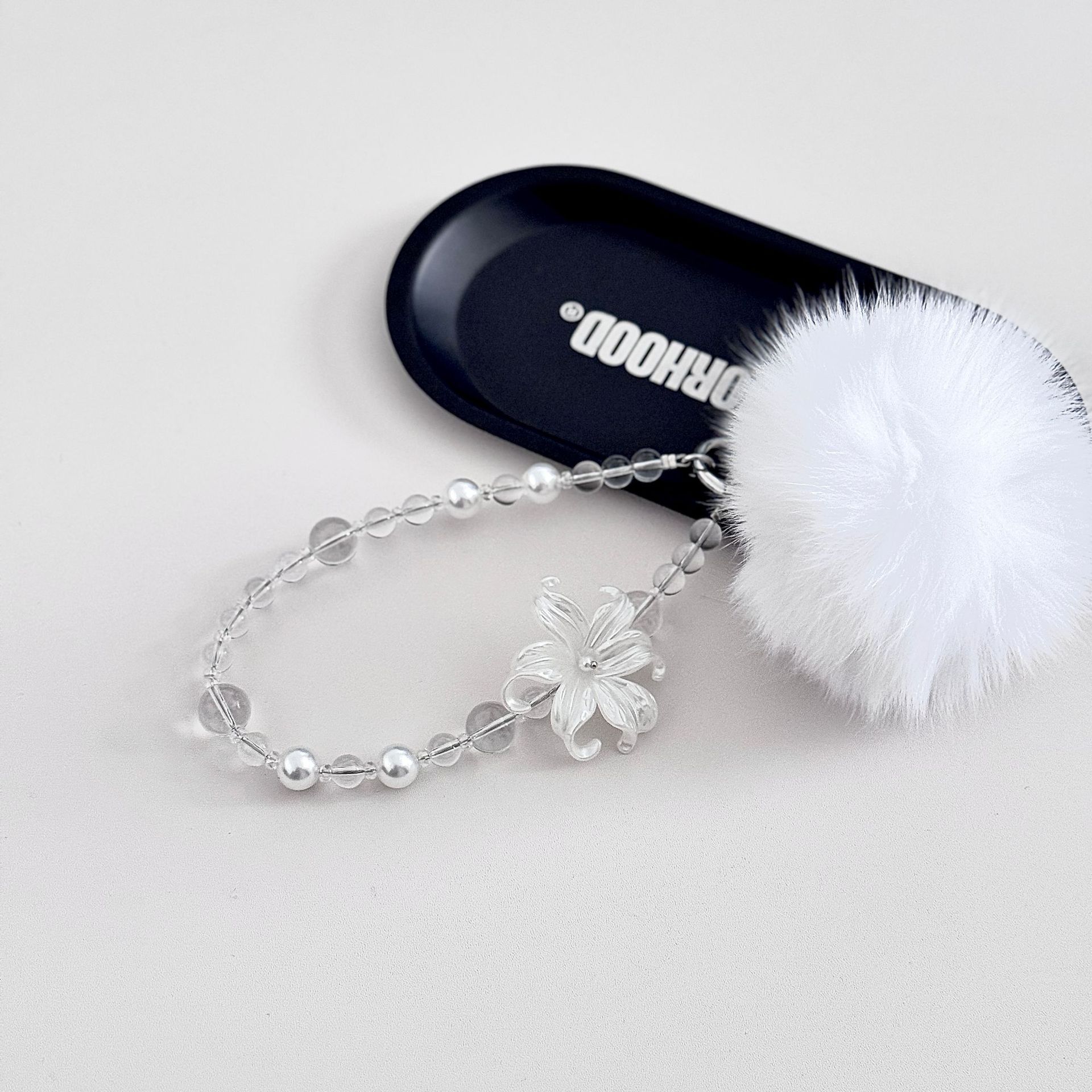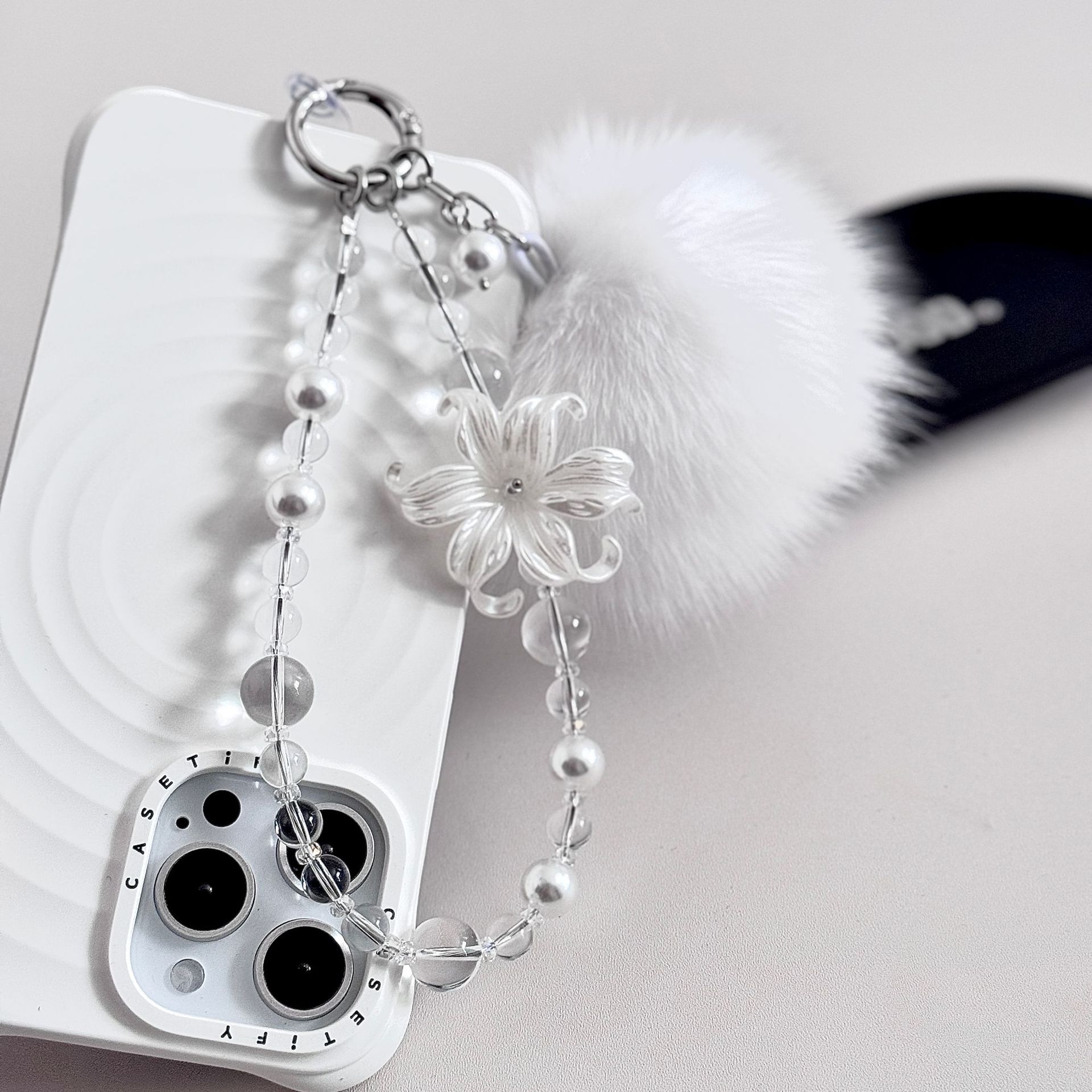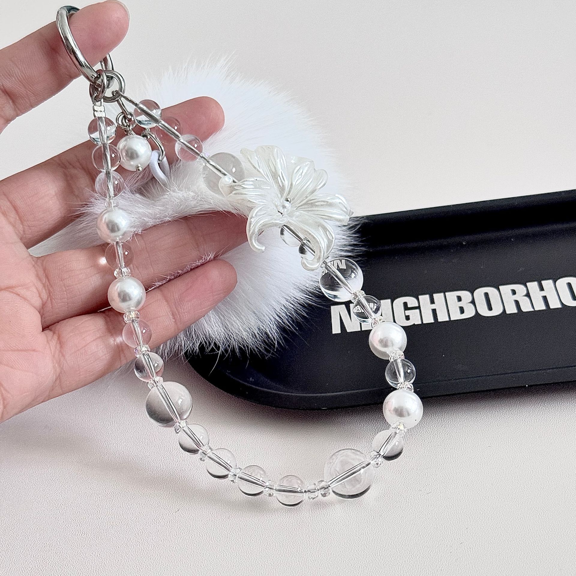 Originalmente, el cabello de pelo de zorro de gran tamaño para teléfonos móviles, cuentas de cristal transparentes, bolsas colgantes, colgantes de llaveros de automóviles