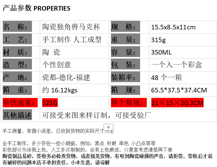 | Color | Taza de cerámica unicornio, 1, 2, 3, 4, 5, 6 |