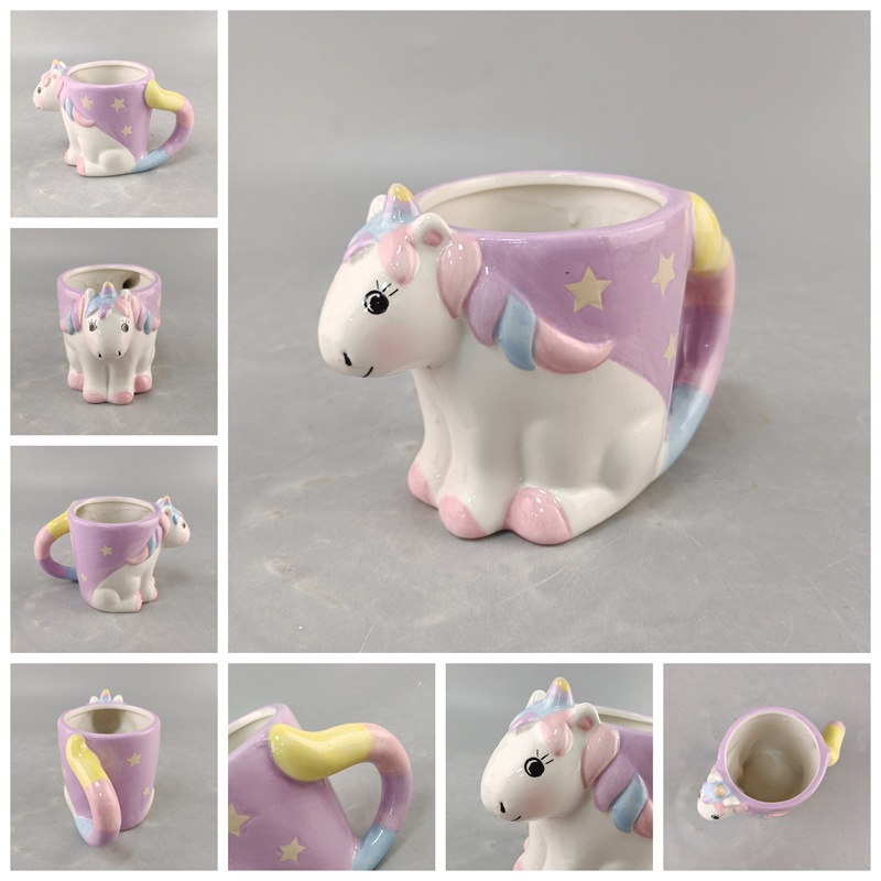Inventario creativo de cerámica lindo unicornio taza de animales taza de leche taza de oficina de cerámica artesanía
