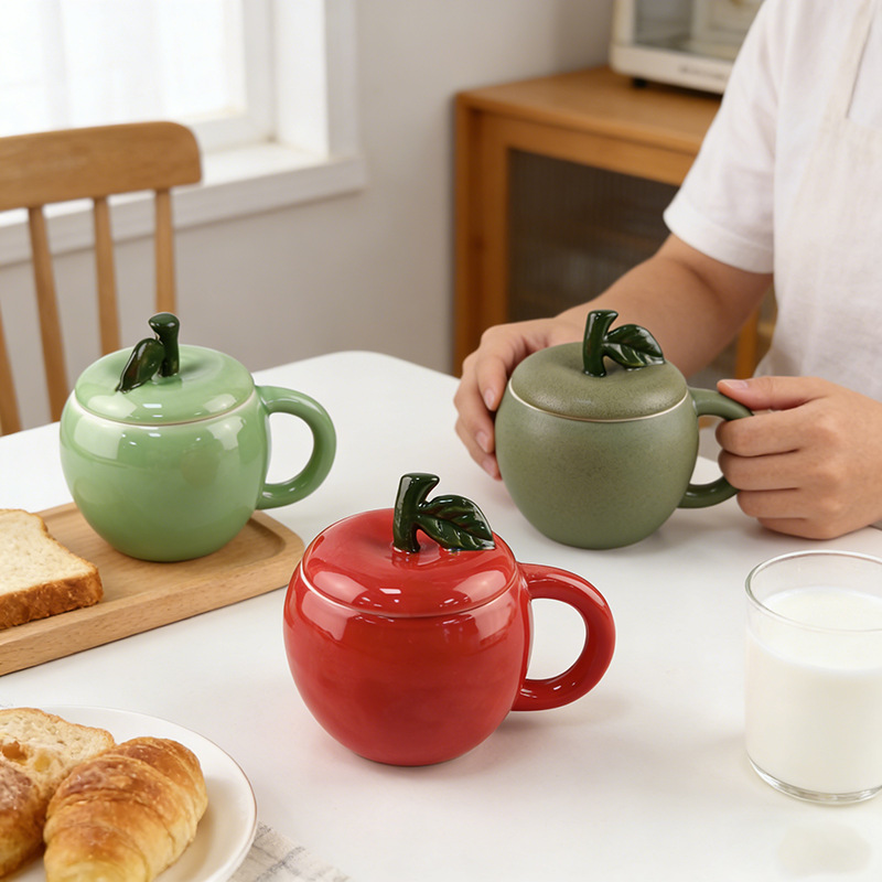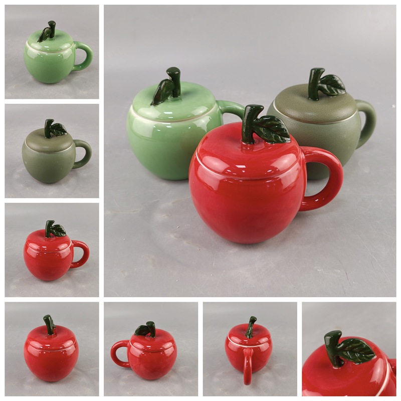 Taza de cerámica de manzana creativa taza de frutas casera encantadora con taza de agua con tapa de alta calidad regalo de Navidad