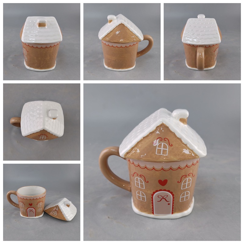 Navidad pan de jengibre hombre taza de relieve cerámica casa pintada a mano taza de café cerámica regalo de Navidad casa pan de jengibre