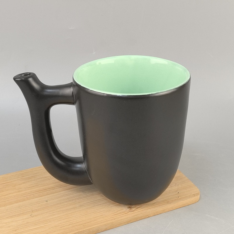 Taza de mariyuana de cerámica creativa doble pipa de café taza de cáñamo logotipo para fumar mayorista transfronterizo Europa y América