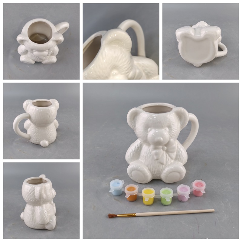 Inventario creativo de cerámica blanca con taza de oso de aluminio puede ser DIY con pigmentos de alto valor artesanía interesante
