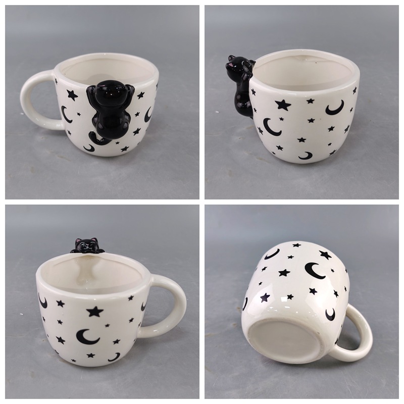 Cerámica taza de Halloween, taza de gato, taza de cerámica pintada a mano, taza de animales, taza de agua de pareja, encantadora
