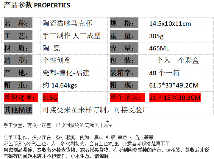 | Color | Taza de gato de cerámica modelo A, taza de gato de cerámica modelo B |