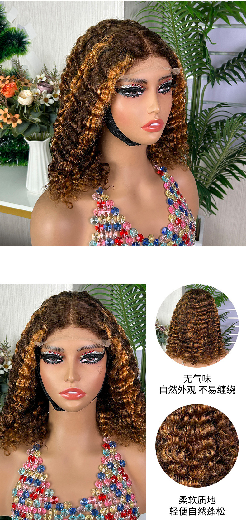100% cabello humano Burmese curly lace wig Peruca de encaje frontal cabello rizado birmano