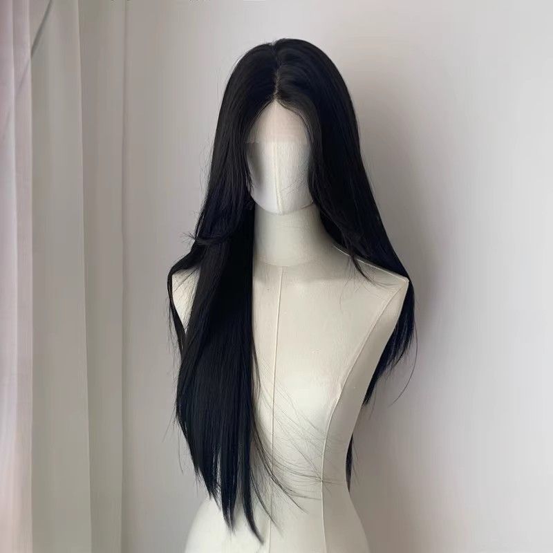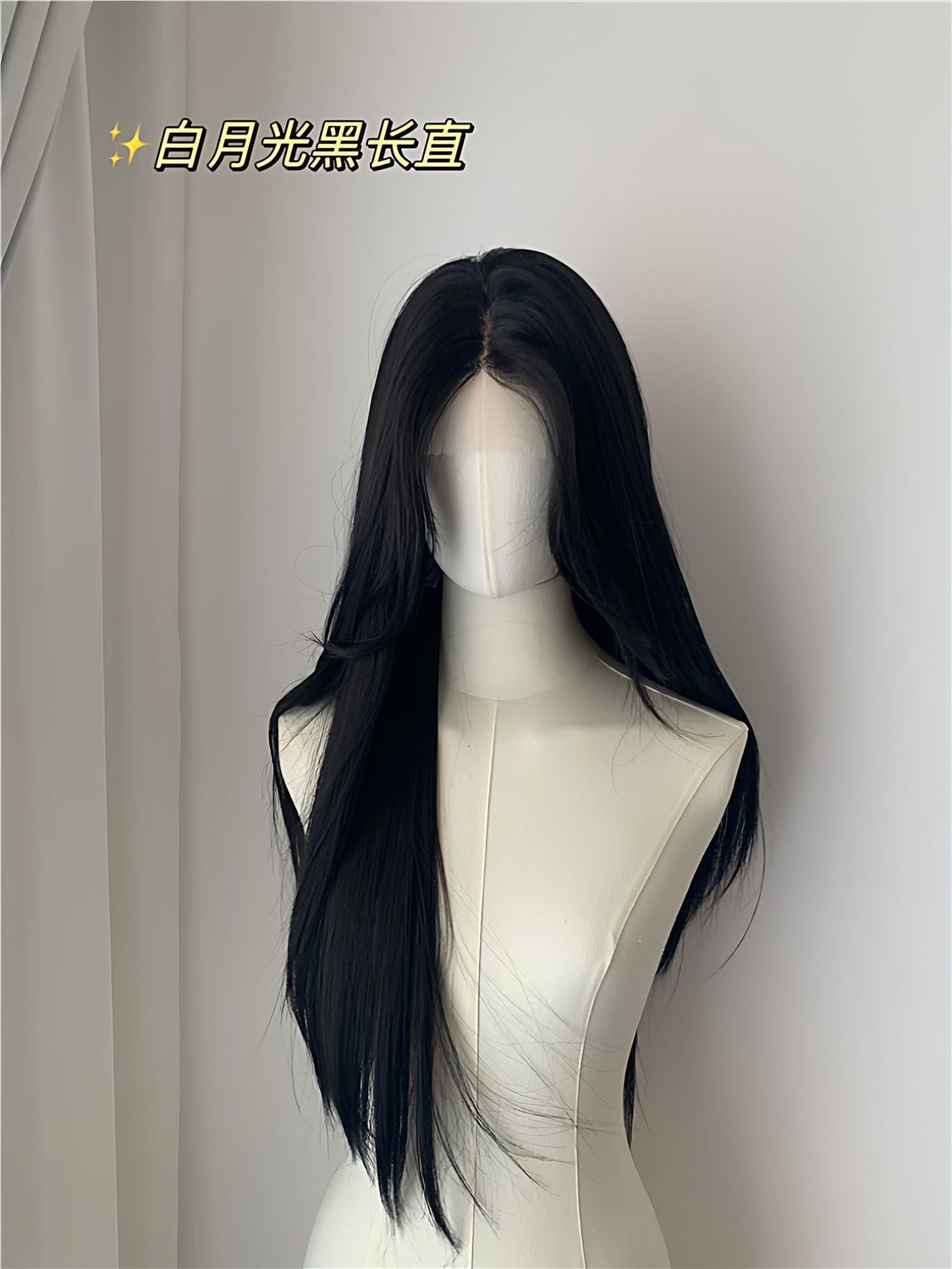 Perucas negras mujeres de encaje pequeño de ocho caracteres peñas largas recto diario negro largo recto cos gancho de mano cubierta de cabeza
