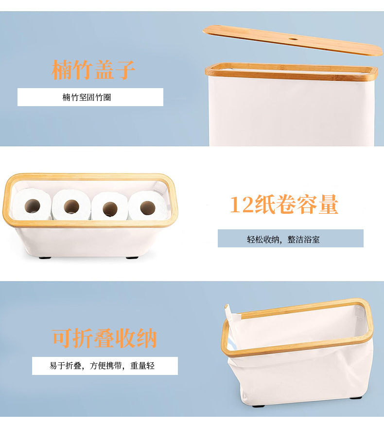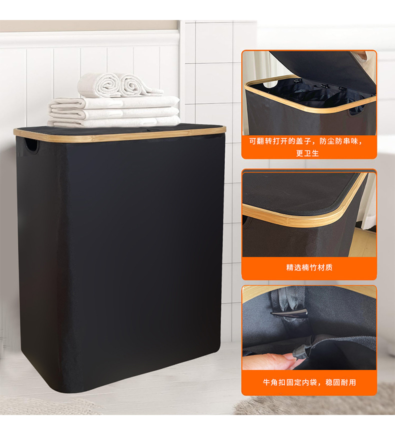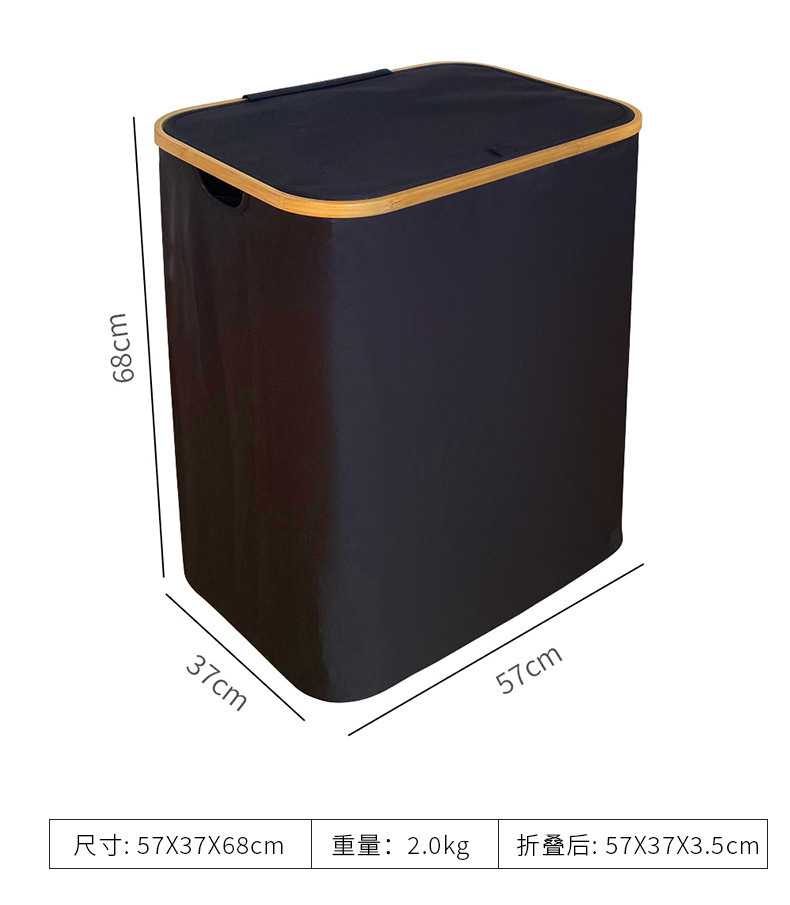 Cesta de ropa sucia transfronteriza con bolsillo interior con cubierta de bambú y madera plegable Cesta de almacenamiento de ropa sucia Cesta de ropa sucia