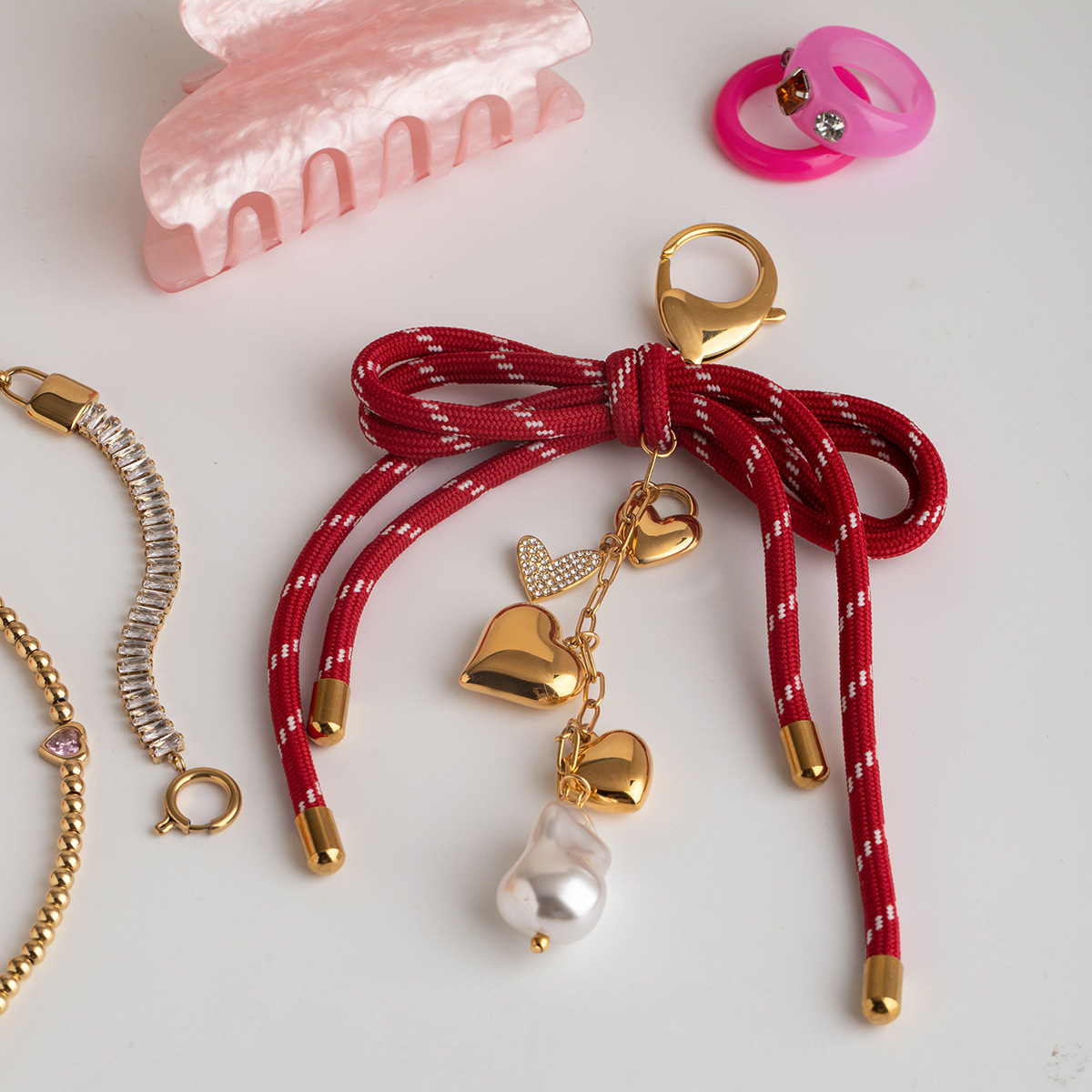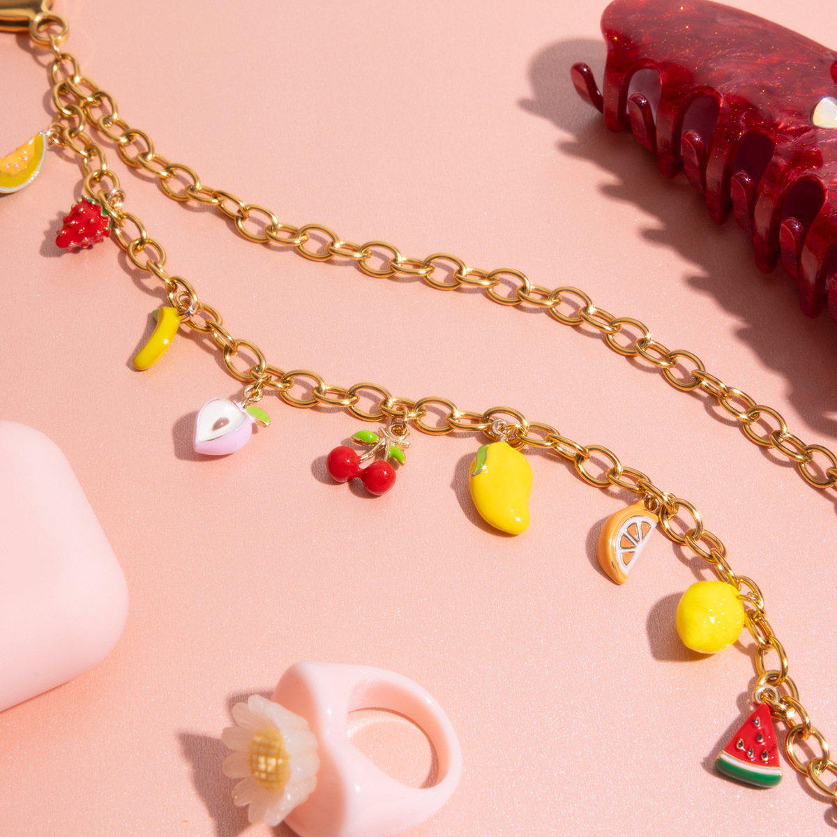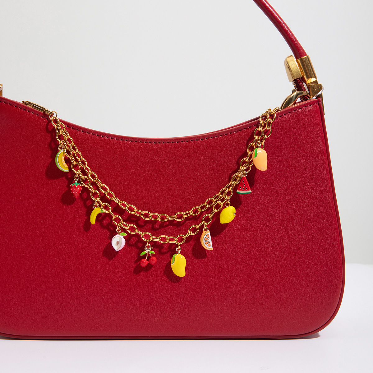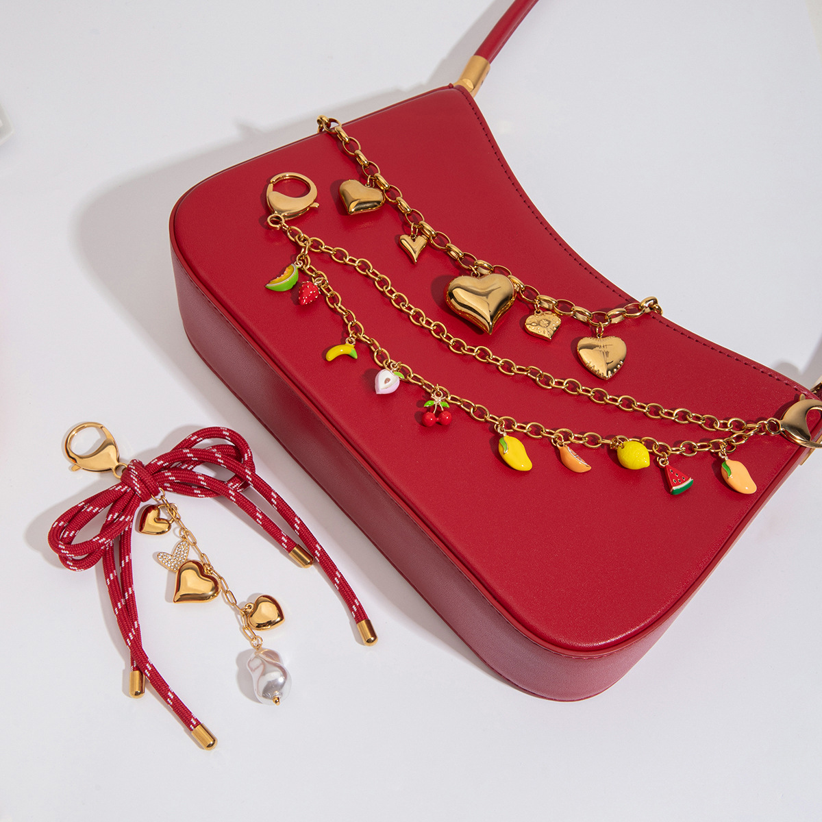 Wanxing Europa y América de alta gama bolso colgante diseño de nicho sentido titanio acero 18 quilates amor dorado fruta cadena colgante joyería de perlas