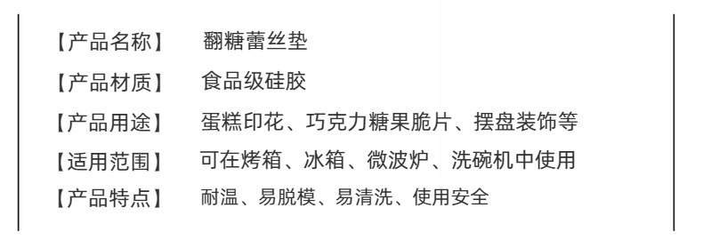 | Almohadilla de encaje fondant | Decoración del plato |