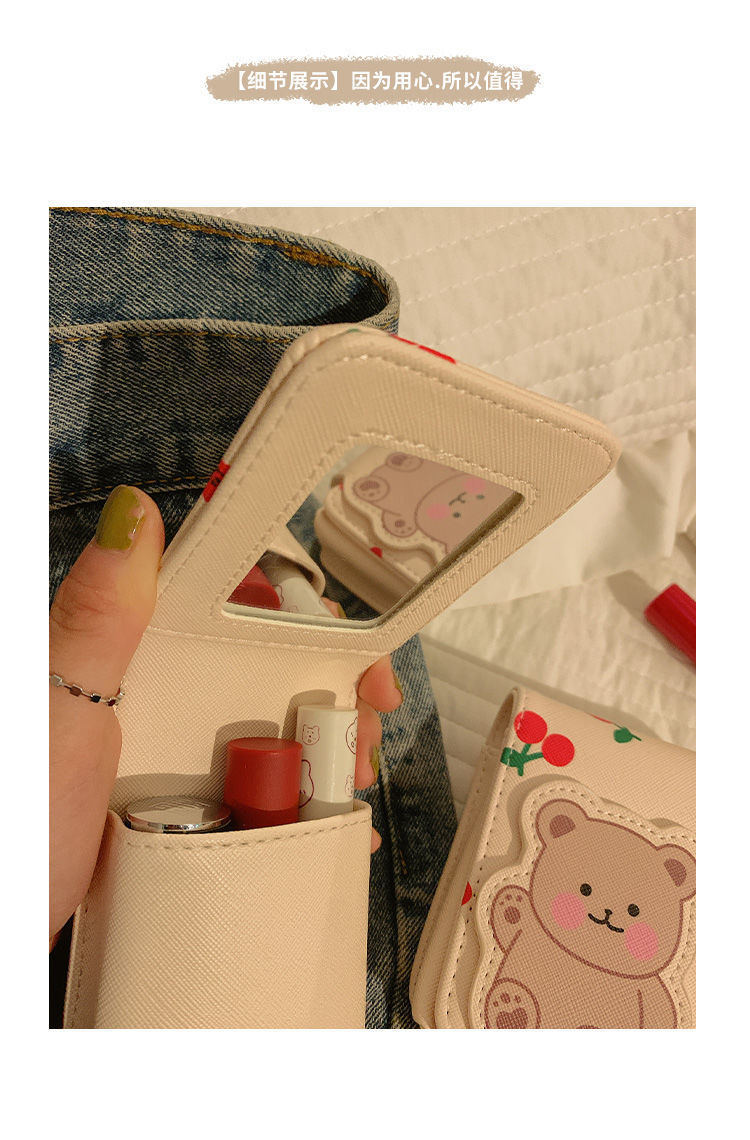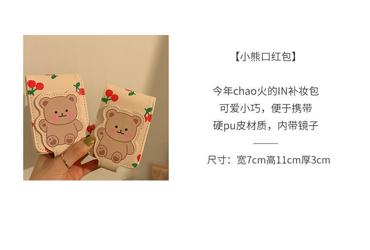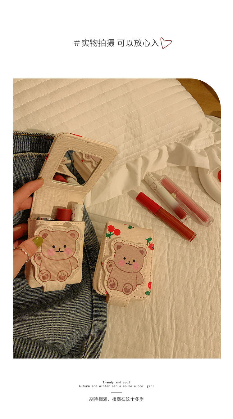 Pequeño oso lápiz labial bolsa con espejo MINI BOLSA chica portátil de viaje maquillaje bolsa de almacenamiento de maquillaje bolsa avanzada