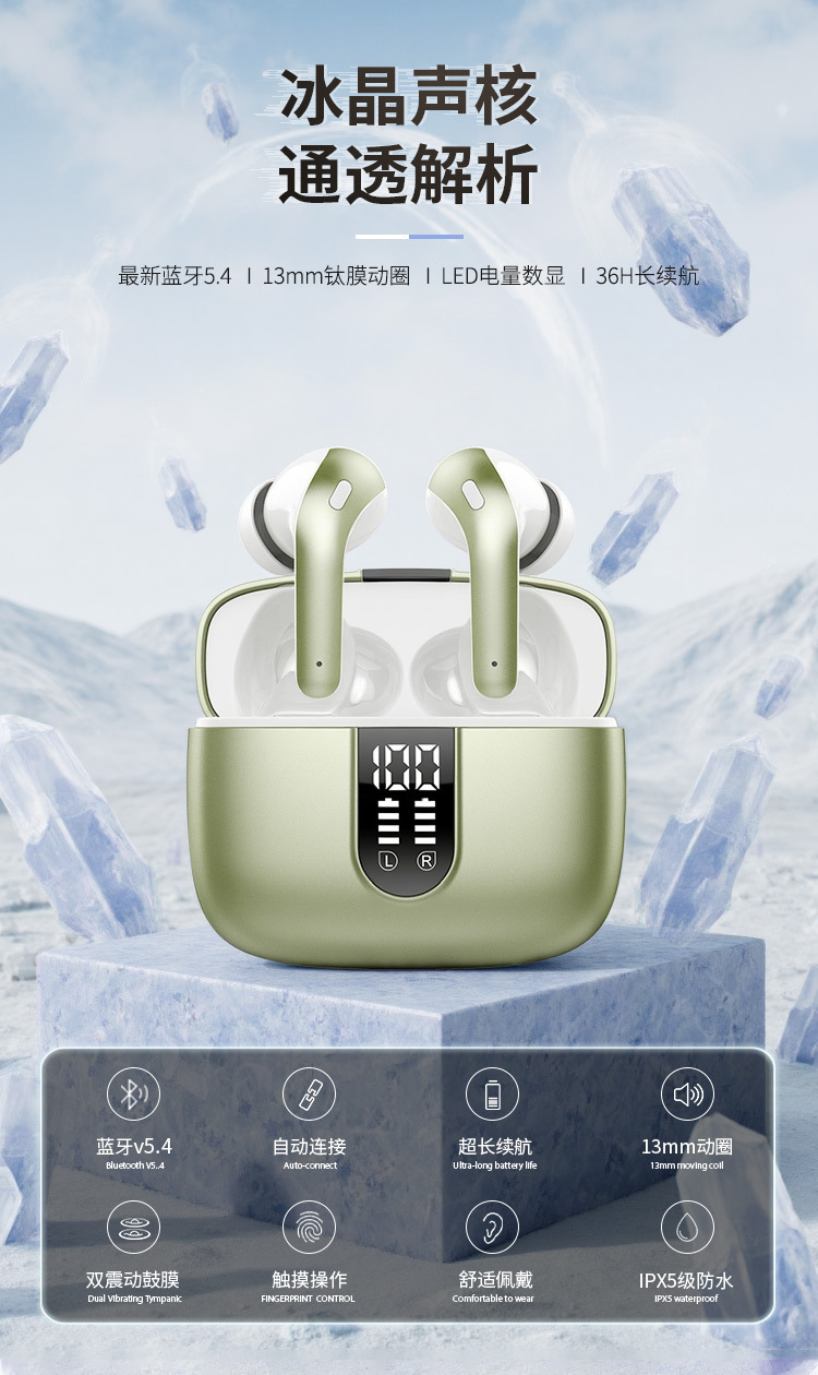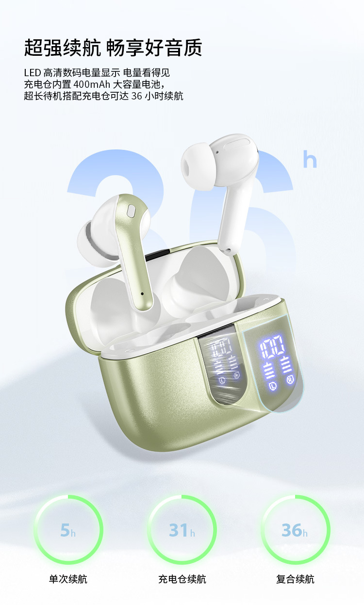 | Función | Impermeable,Carga inalámbrica,Reducción de ruido,Duración de la batería,Función de llamada,Control de voz,Música de apoyo,Pantalla digital,Esports de baja latencia |