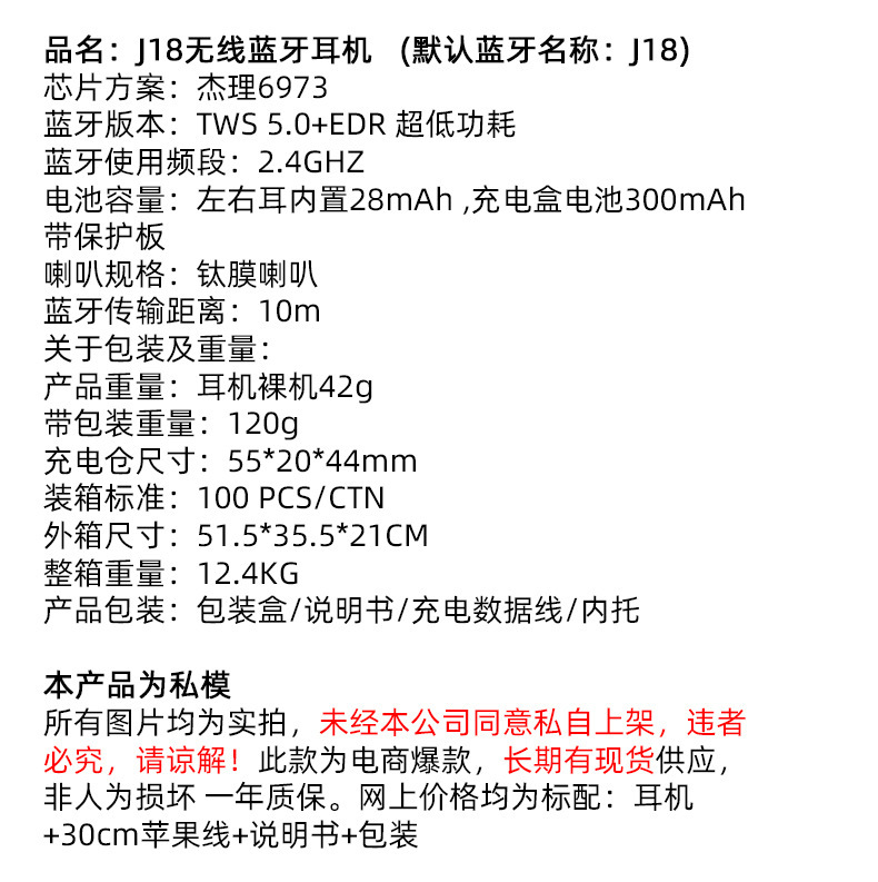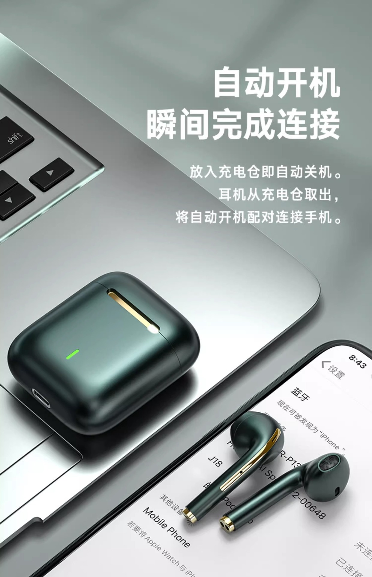 J18 auriculares Bluetooth inalámbrico auriculares Bluetooth reducción de ruido modelo privado TW en la oreja auriculares deportes auriculares inalámbricos Bluetooth