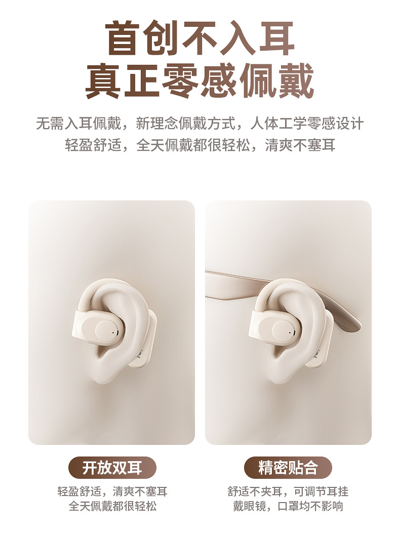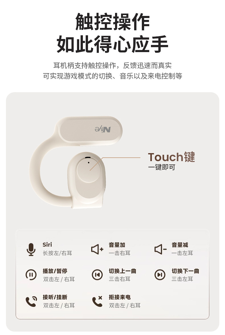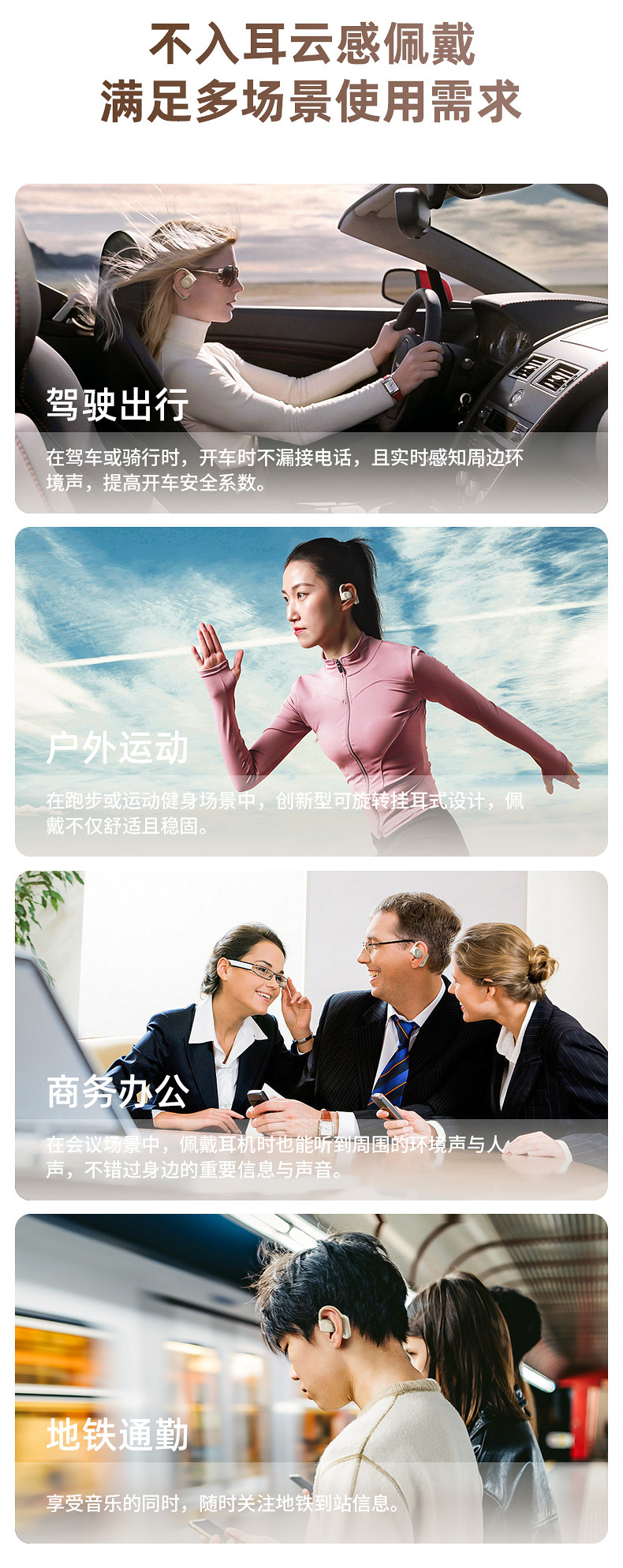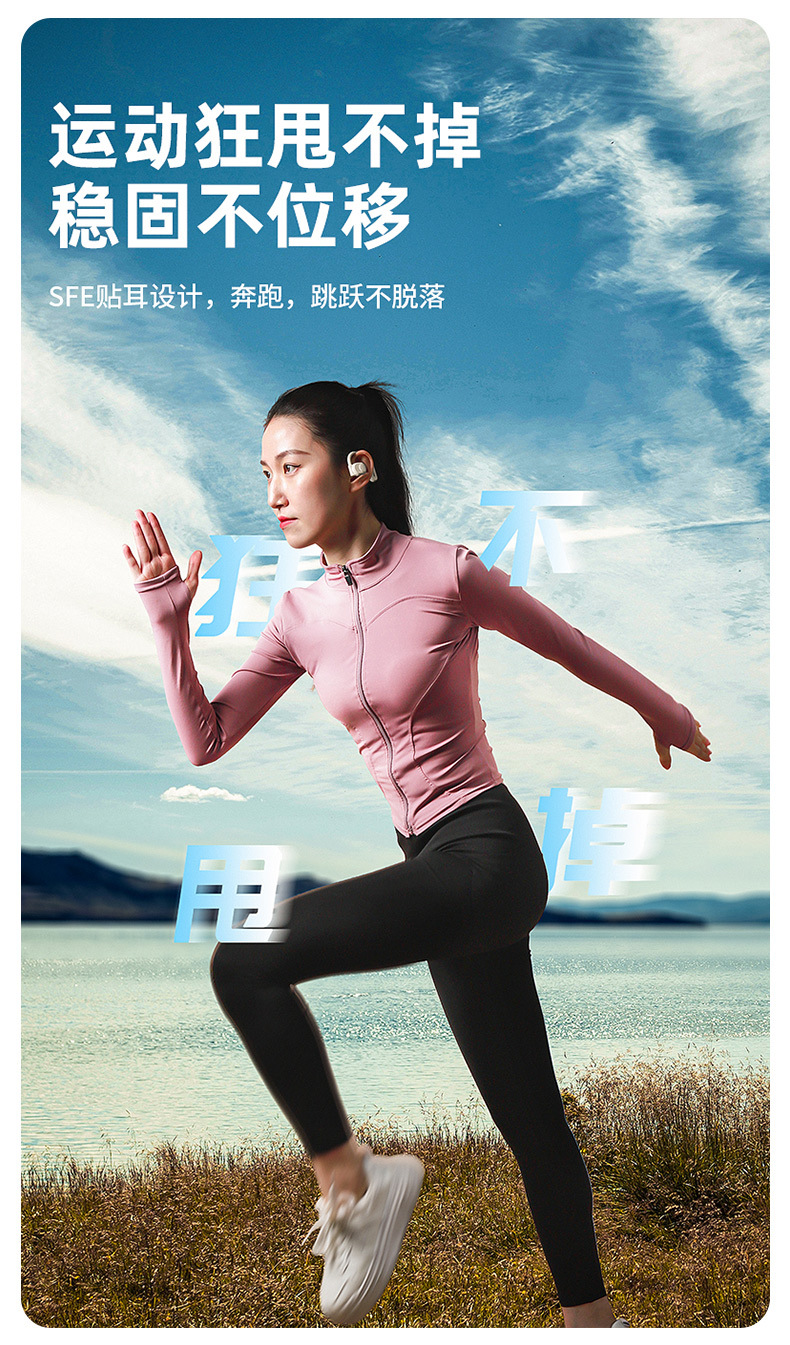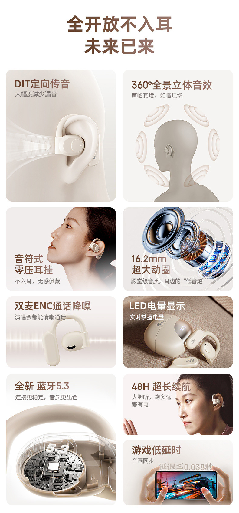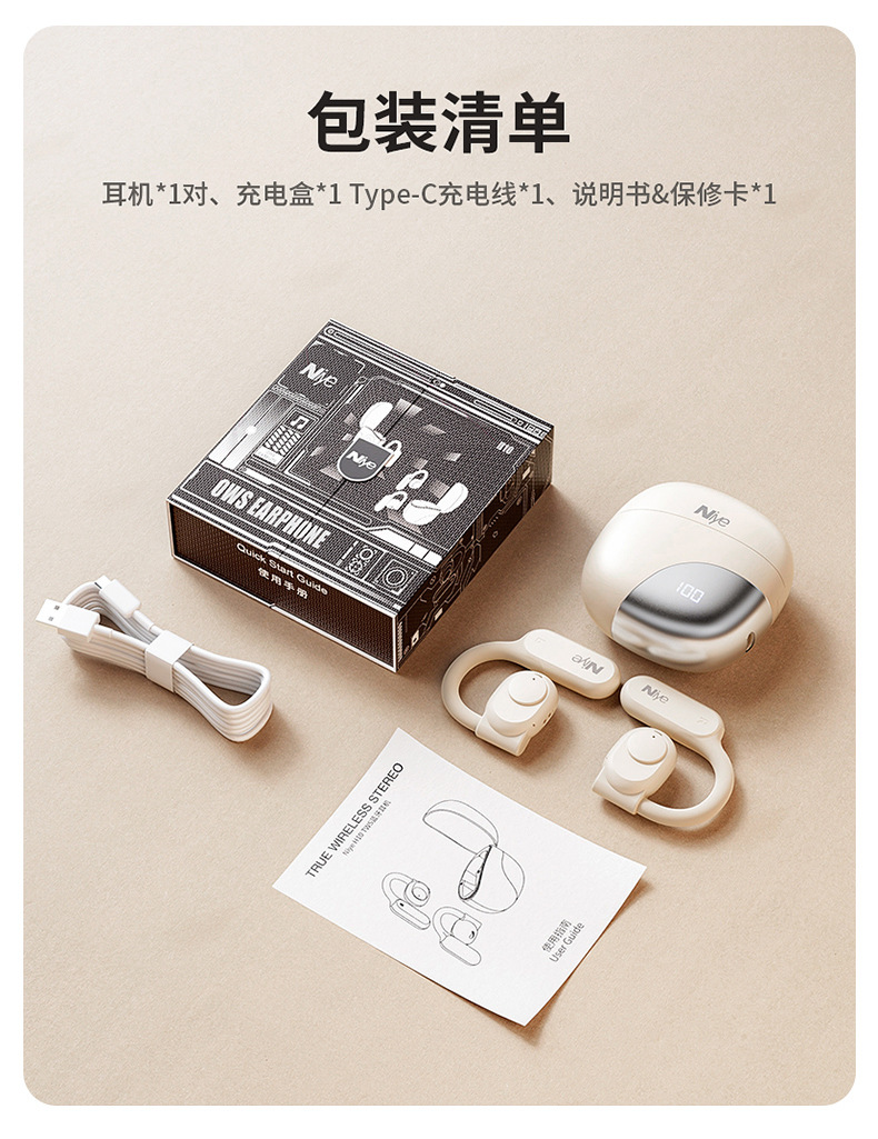Niye nuevo H10 oído inalámbrico Clip-on de un solo oído auriculares Bluetooth 5,3 ultra-larga resistencia espera reducción de ruido Deportes