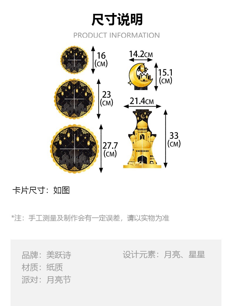 产品用途:节日派对甜品装饰用品,月亮节气氛装饰道具。