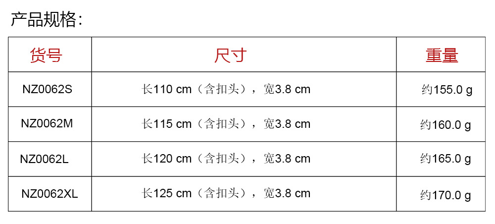 | Longitud (cm) | 110cm,115cm,120cm,125cm |