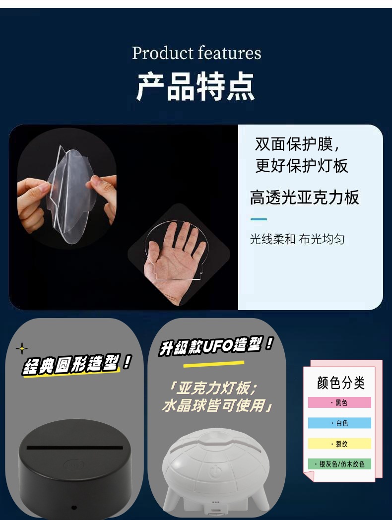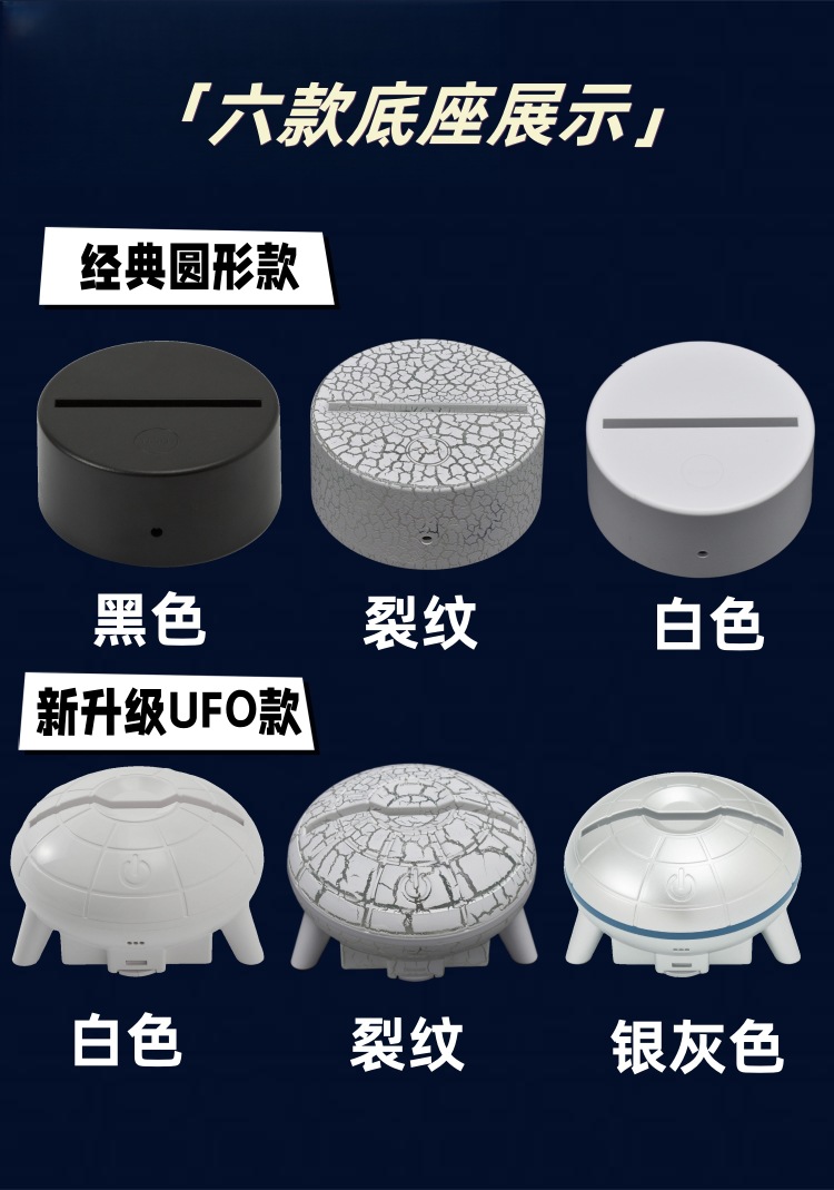 | Potencia de la fuente de luz | Negro redondo 7 colores táctil,Negro redondo 16 colores control remoto 7 colores táctil,Grieta redonda táctil de 7 colores,Grieta redonda 16 colores control remoto 7 colores táctil,Táctil de 7 colores blanco OVNI,UFO blanco 16 colores control remoto 7 colores táctil,Táctil de 7 colores de grieta OVNI,Grieta UFO 16 colores control remoto 7 colores táctil,Tablero de luz acrílica (no emite luz) |