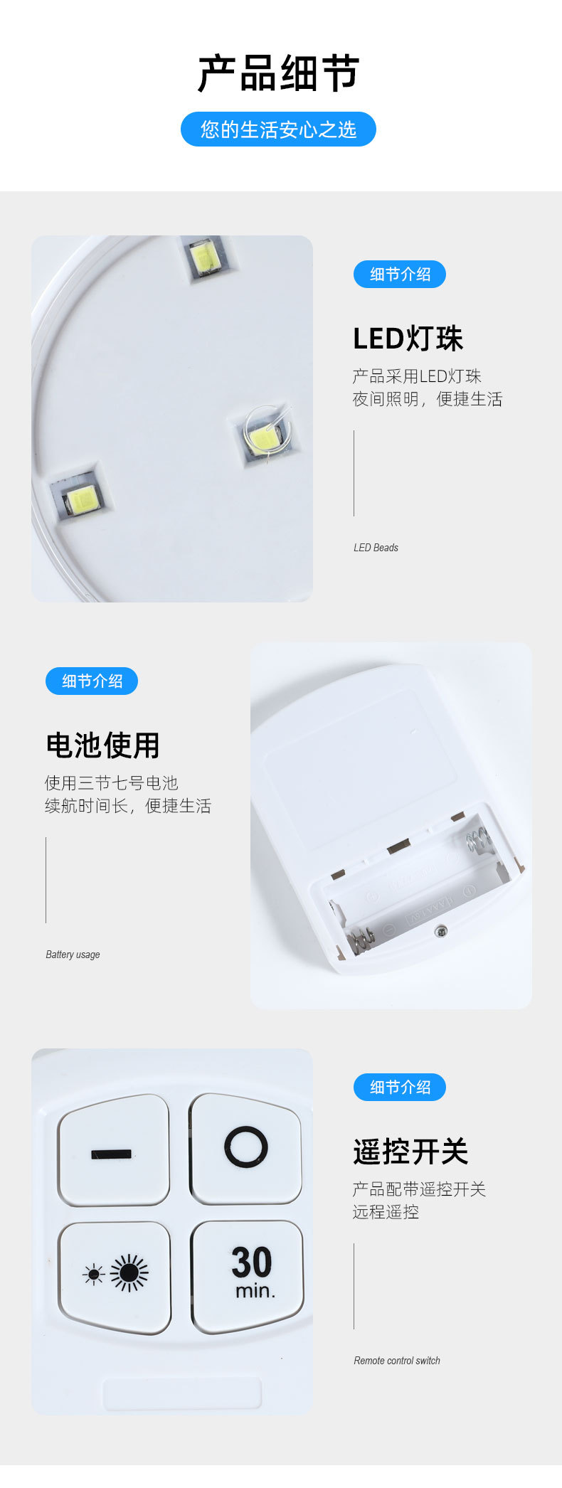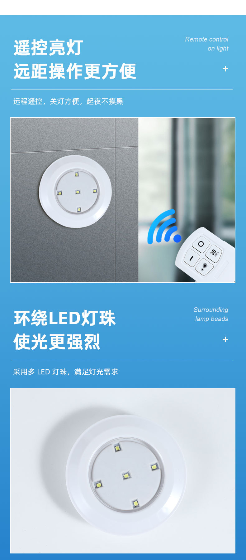 Batería de plástico control remoto inalámbrico 5LED luz la noche creativa cocina dormitorio armario lámpara pared portátil