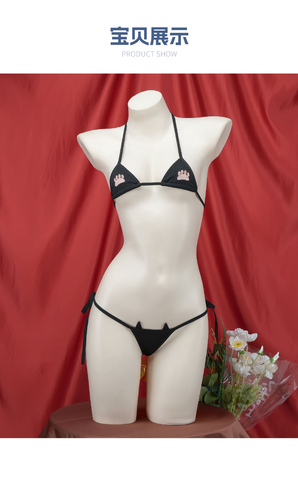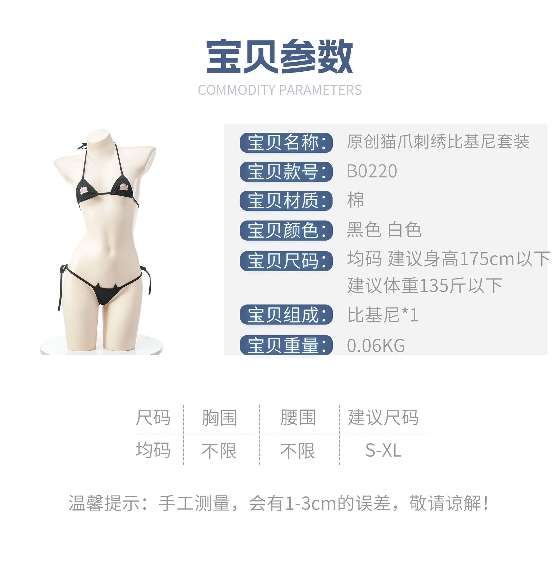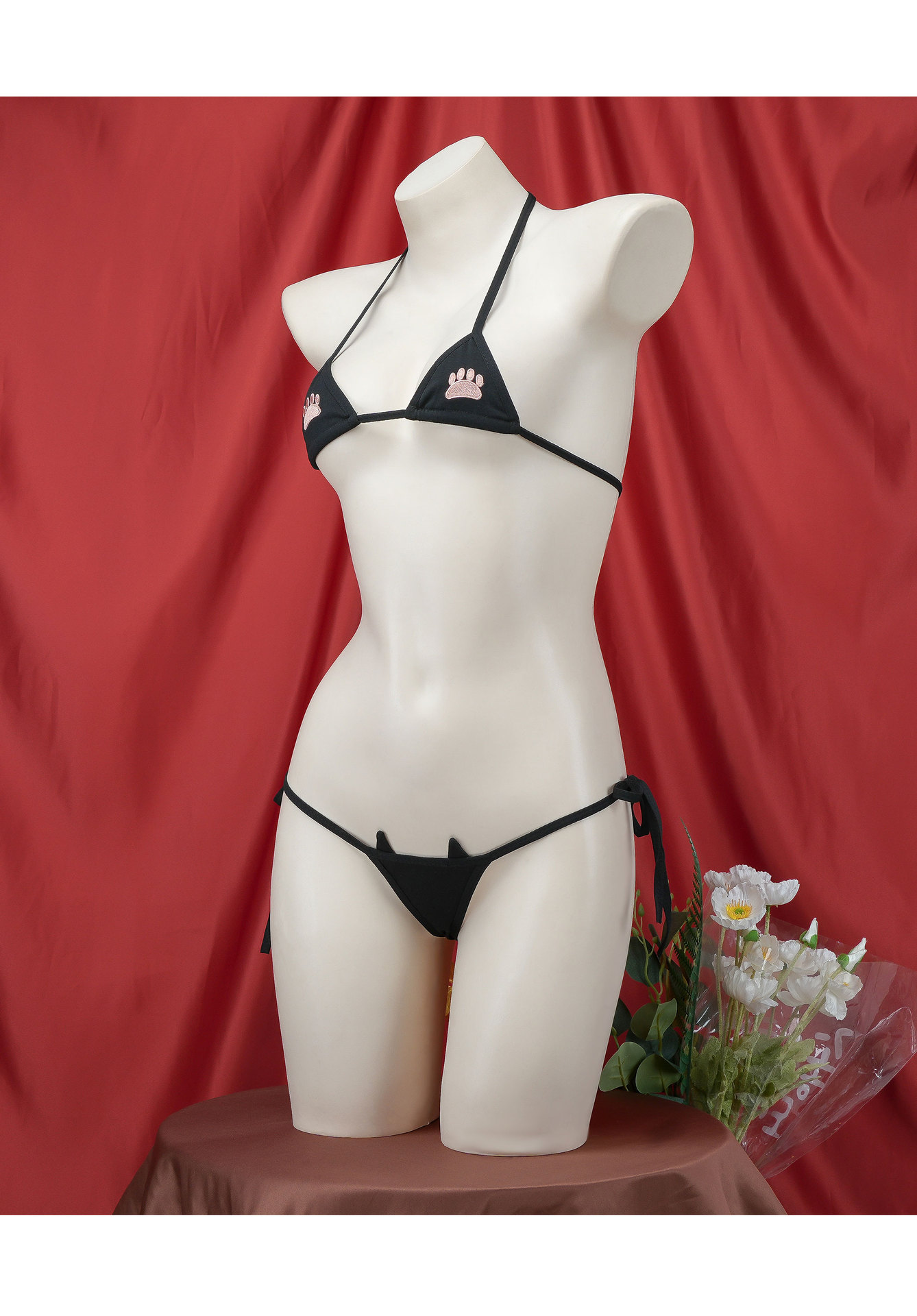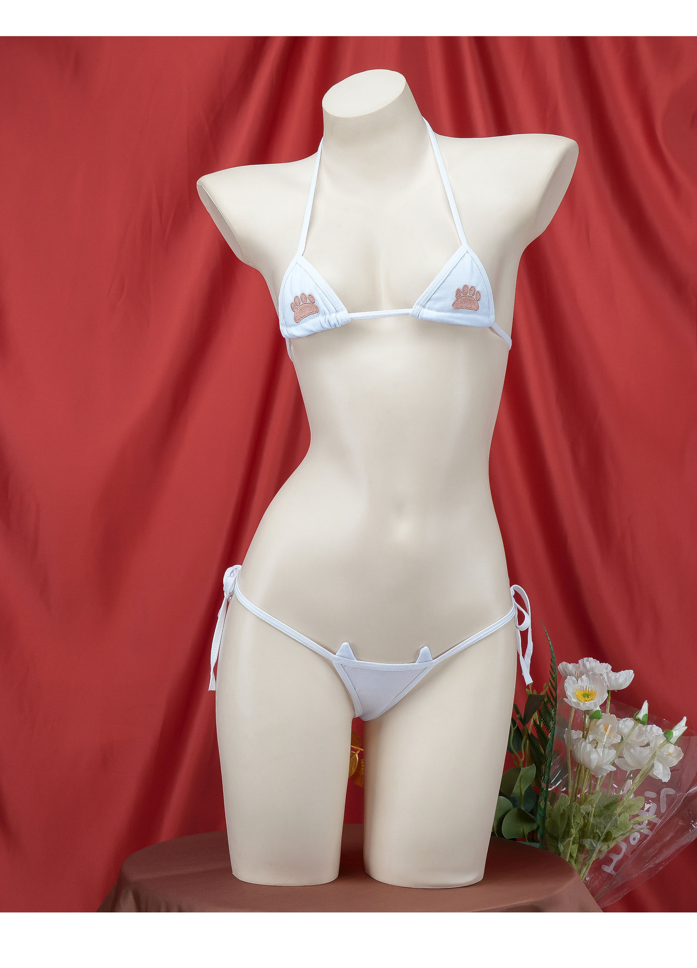Traje de baño bordado mini garra de gato de tres puntos con cordones bikini sexy para mujer en casa privada B0220