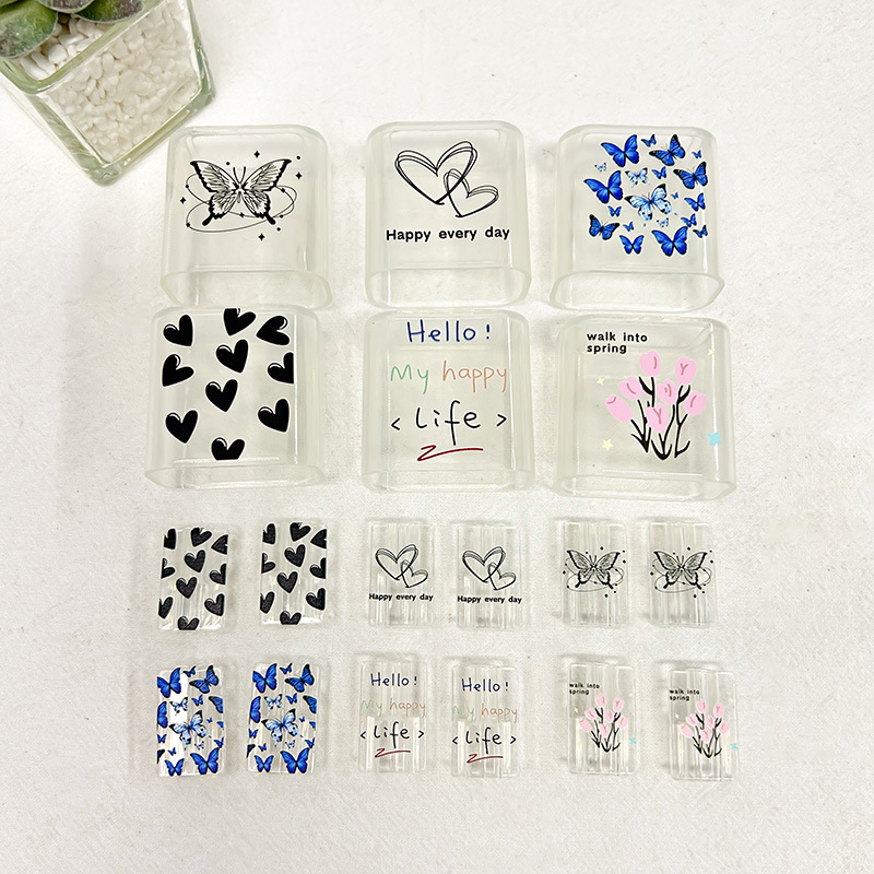 | Colores | 【Modelo transparente convencional】 life,[Modelo transparente regular] Tulipanes con letras negras,[Modelo transparente regular] Amor negro,[Modelo transparente regular] Doble amor,【Modelo transparente convencional】 Star Butterfly,【Modelo transparente convencional】 Mariposa azul |