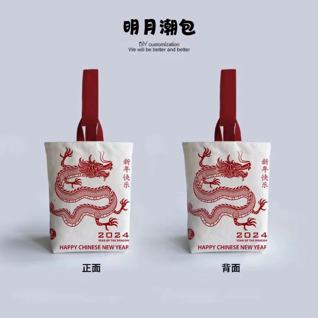 Estilo chino 2024 Año del Dragón Festival de Primavera Dunhuang tuolong portátil para caminar cubo bolsa de muñeca bolsa de almacenamiento bolsa pequeña regalo