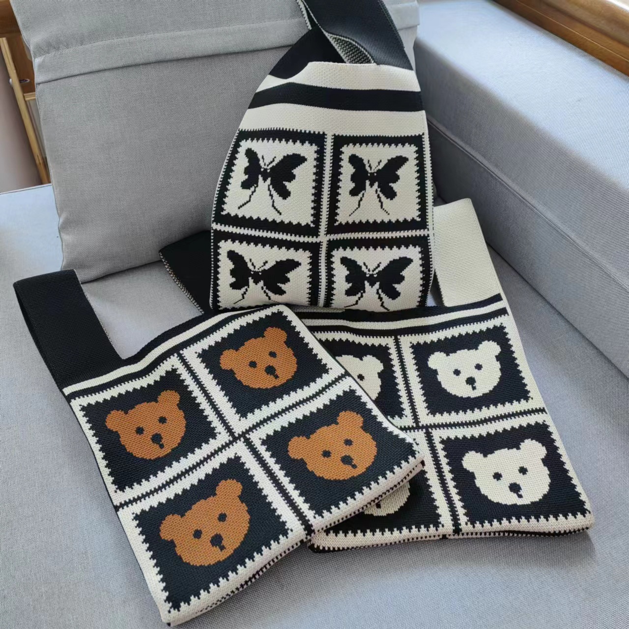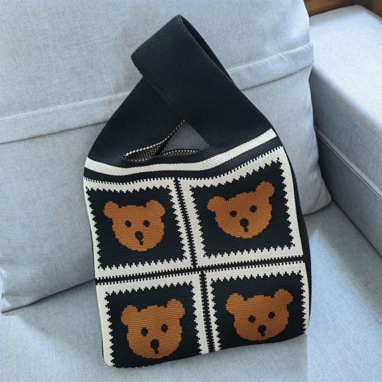 Corea del Sur ins bolsa oso bolso de punto original nicho personalizado bolsa abierta moda bolso de las mujeres