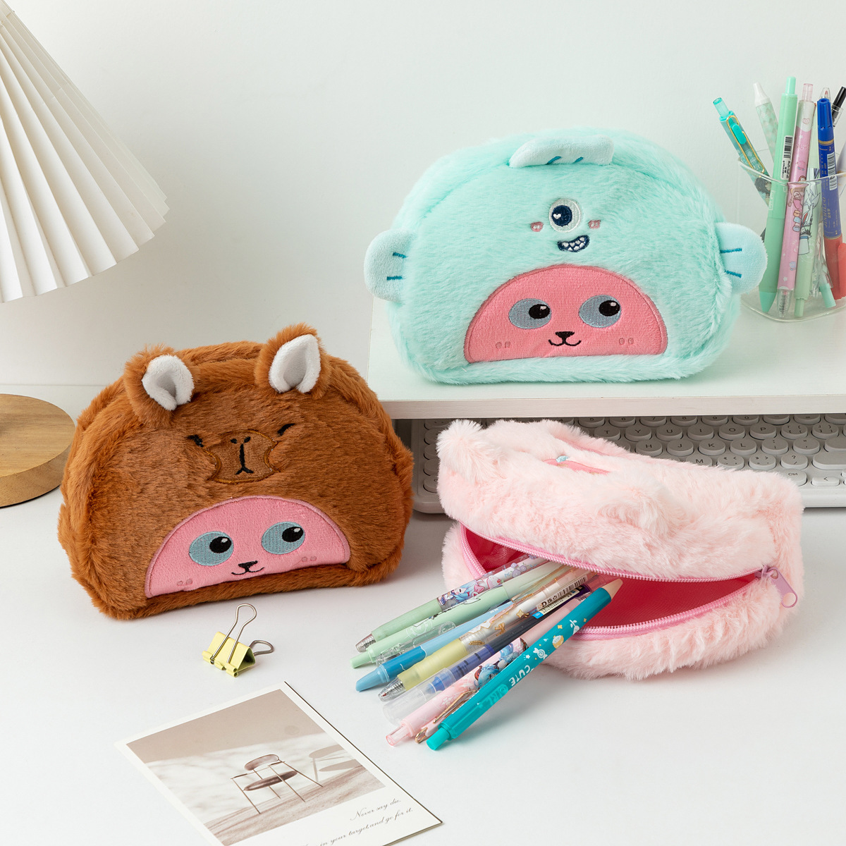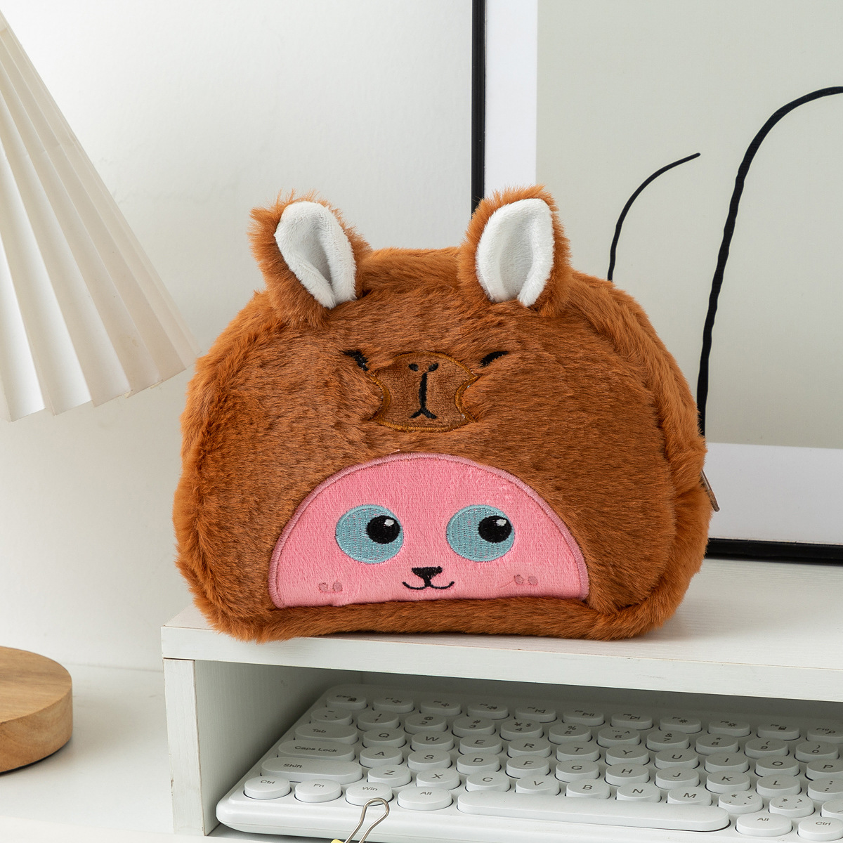Nueva felpa crossbody pequeño Castor loopy lápiz caso japonés lindo dibujos animados papelería bolsa de gran capacidad bolsa de cosméticos para las mujeres