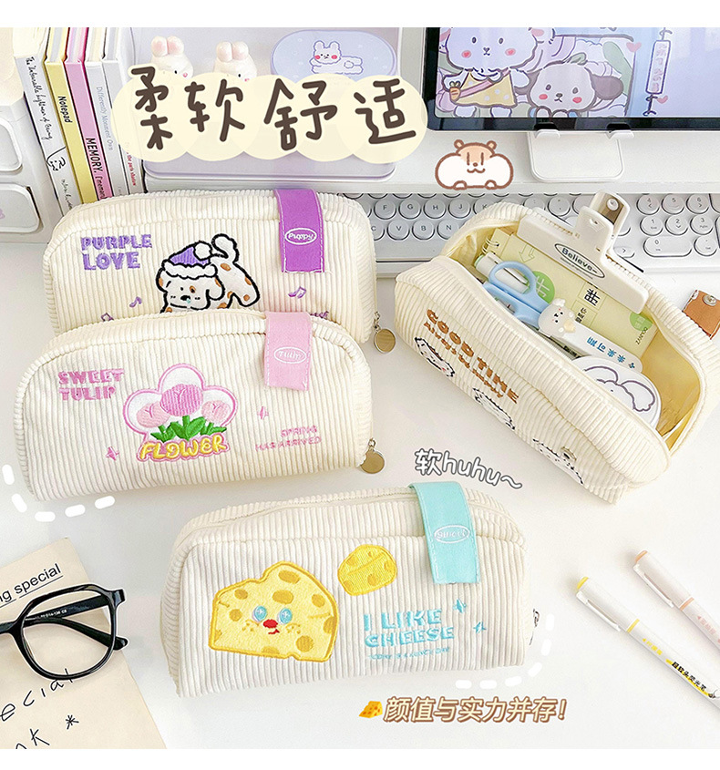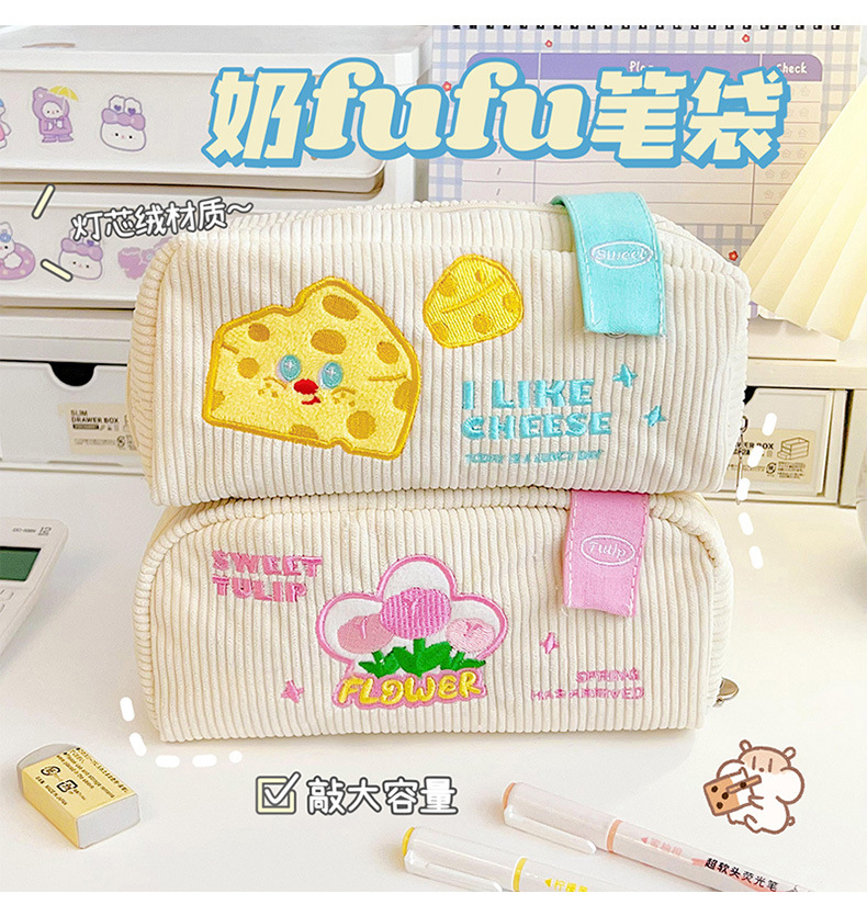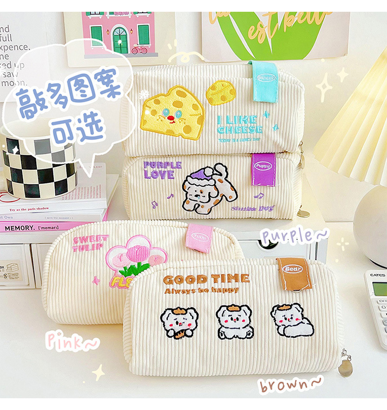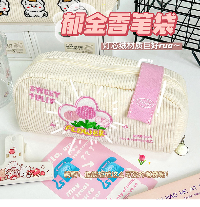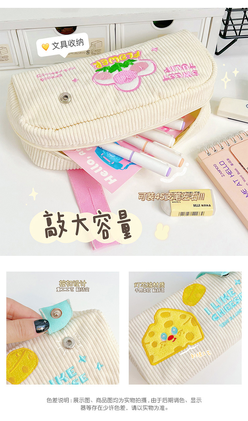 Lindo estuche de lápices bordado ins bolsa de papelería de gran capacidad caja de papelería de estudiante bolsa de lápiz simple bolsa de almacenamiento de cosméticos