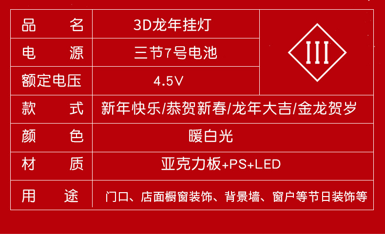 | Alcance del uso | Decoración de Año Nuevo, decoración del Festival de Primavera, suministros de Año Nuevo, sala de ventanas, restaurante, decoración del centro comercial |