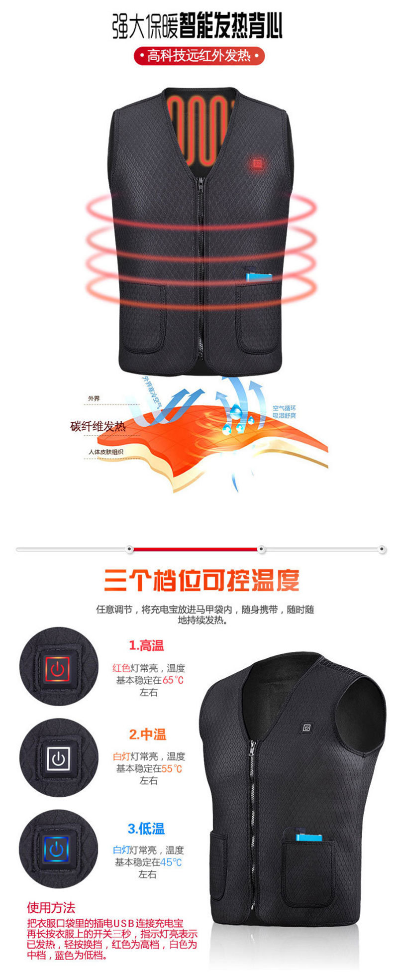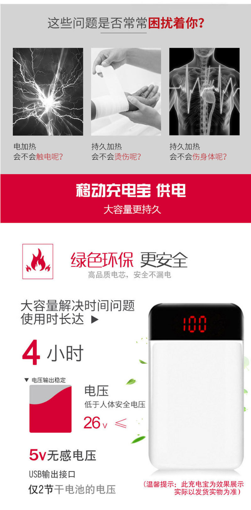 | Color | Forrado de vellón negro,Terapia magnética negra,Banco de apoyo de la energía de 10000 mA |