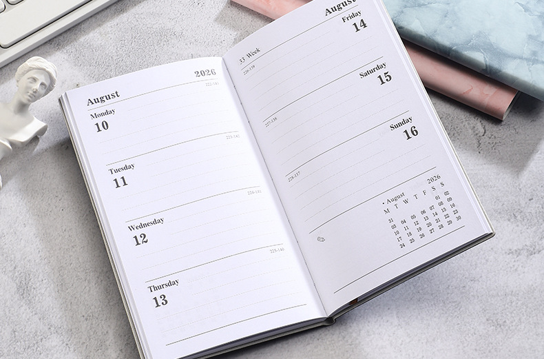 Calendario en inglés 2025 Plan semanal de gestión de tiempo transfronterizo de 365 días Manual de eficiencia del portátil de cuero A6