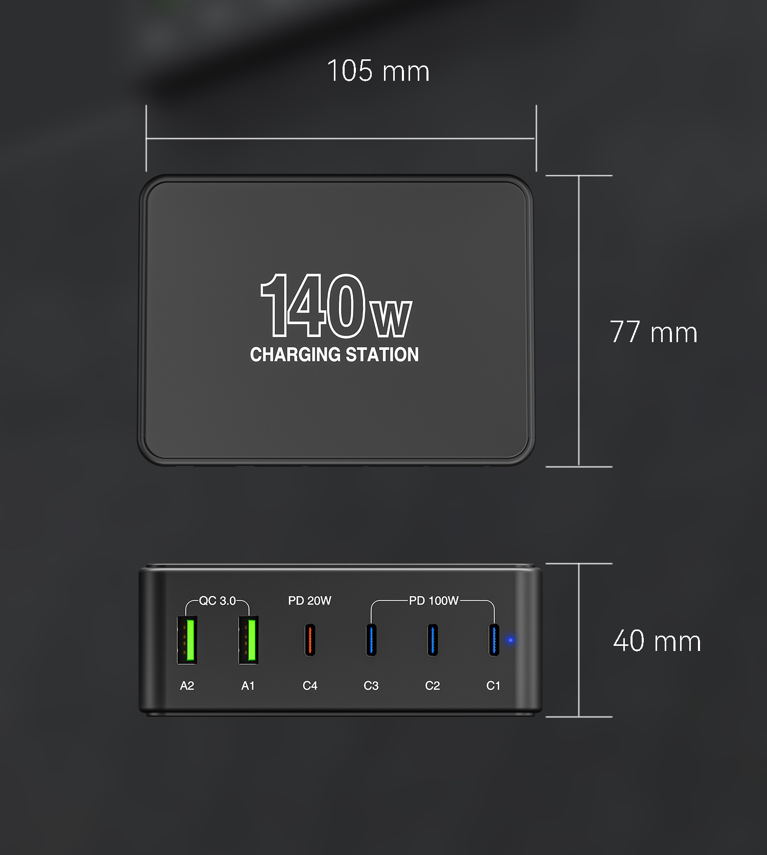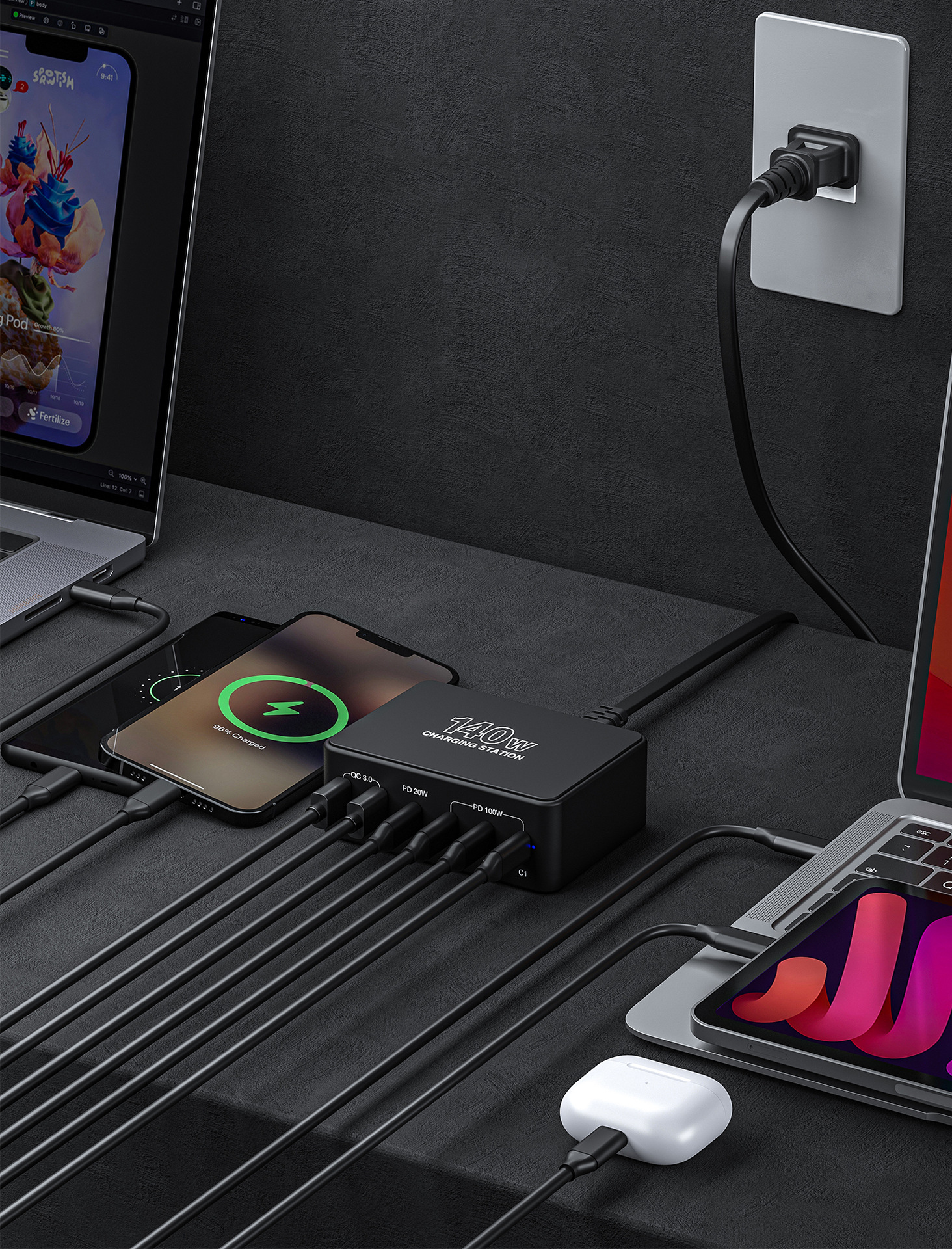 Fabricante 140W USB multi-Puerto cargador PD carga rápida multi-Puerto portátil teléfono móvil adaptador de la cabeza de carga