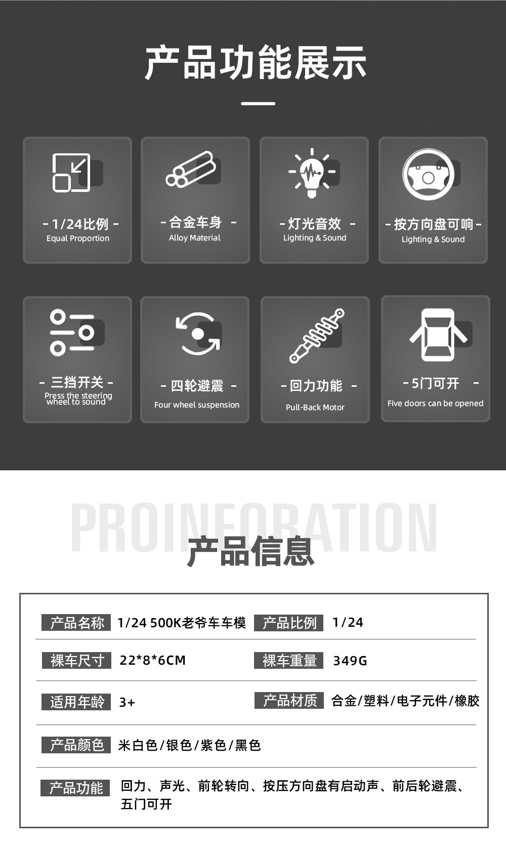 【商品功能】声光、回力、避震、五开门、方向盘可按压