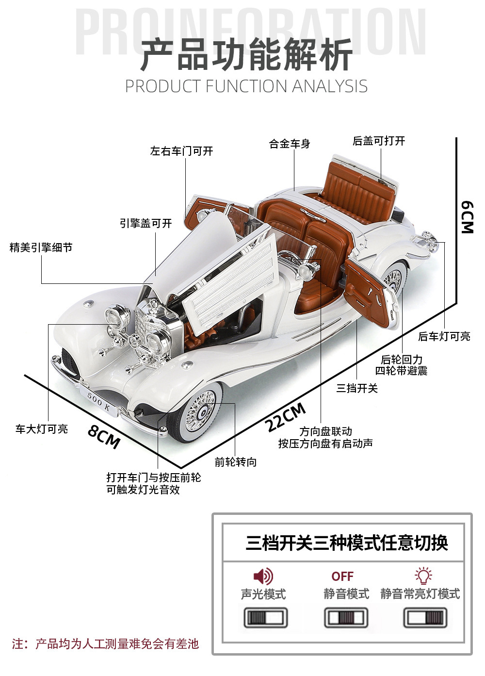 【商品名称】金丽方泡沫盒1:24 大奔500K老爷车