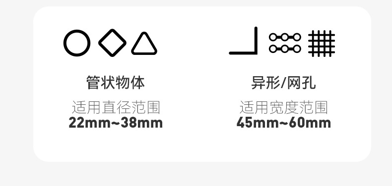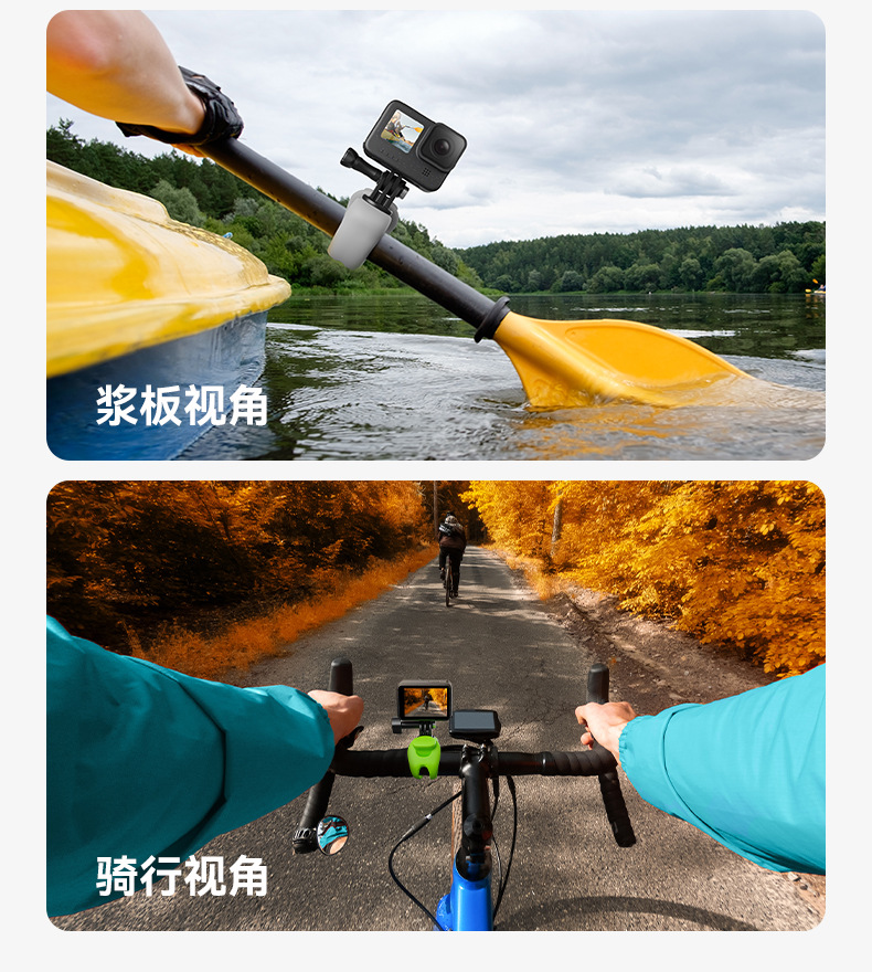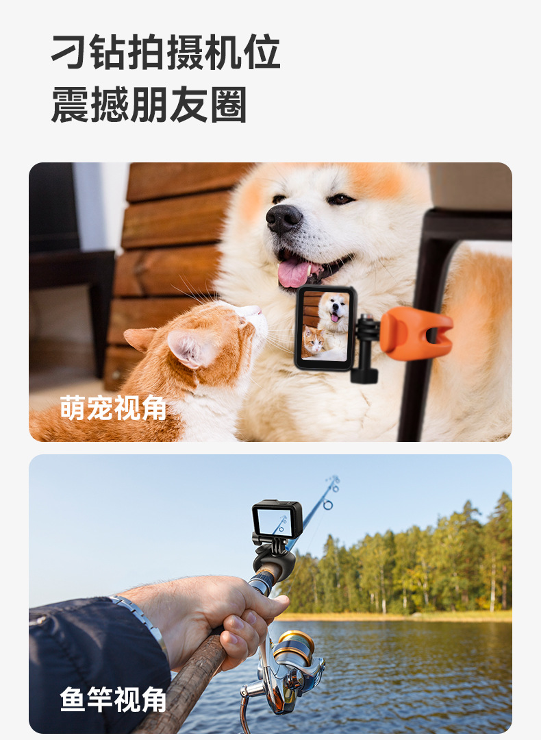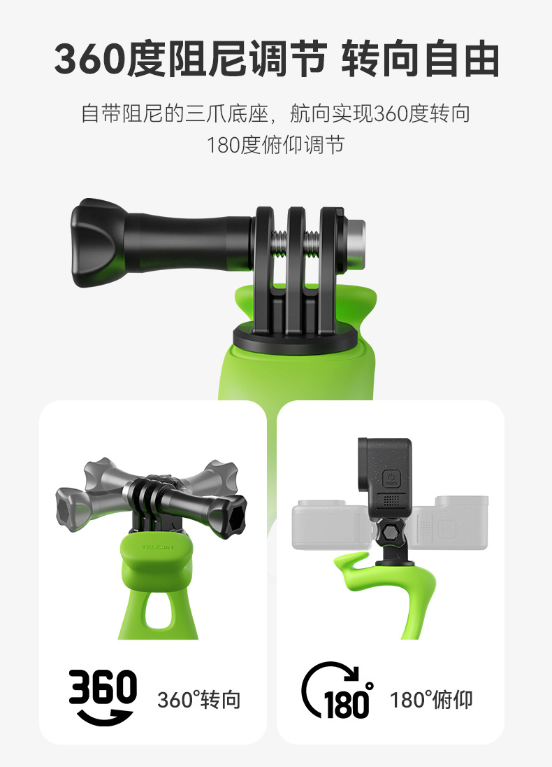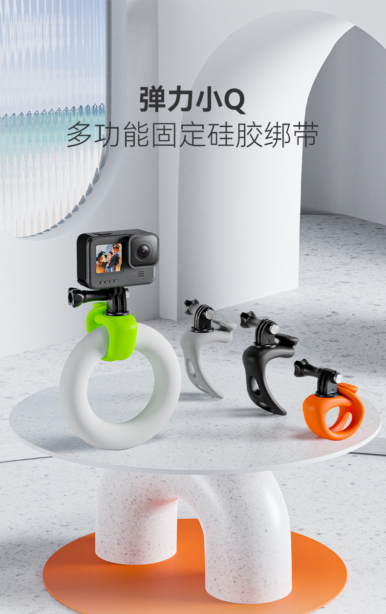 1、高弹硅胶,双孔设计,帮助安装在尺寸不一的物体表面,获得各种刁钻机位;