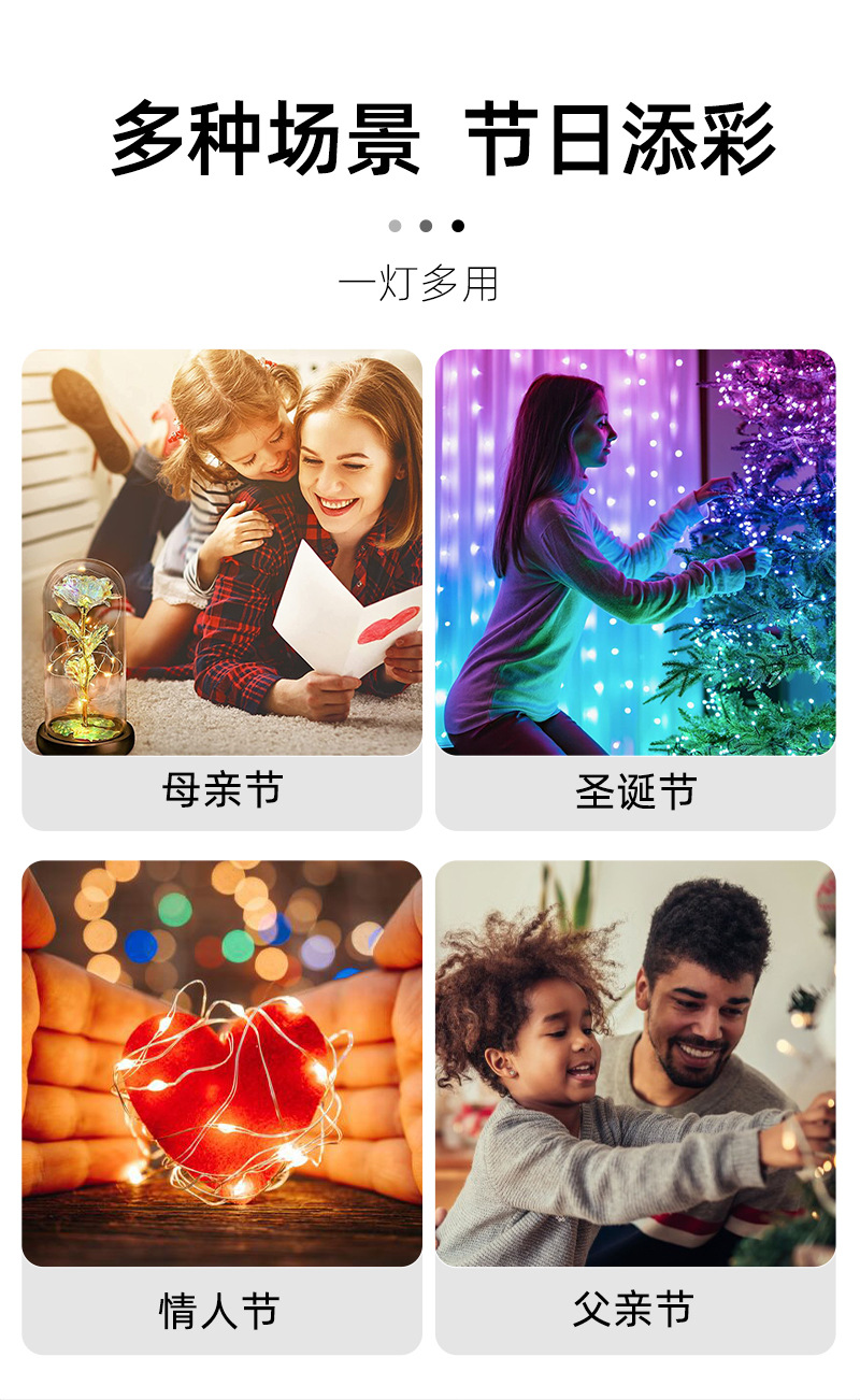 | Especificaciones | 10 metros 100 luces [juego de caja de color],Juego de 15 m 150 luces [juego de caja de color],Juego de luces de 20 m-200 [juego de caja de color] |