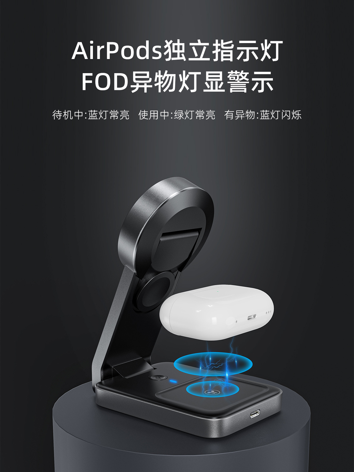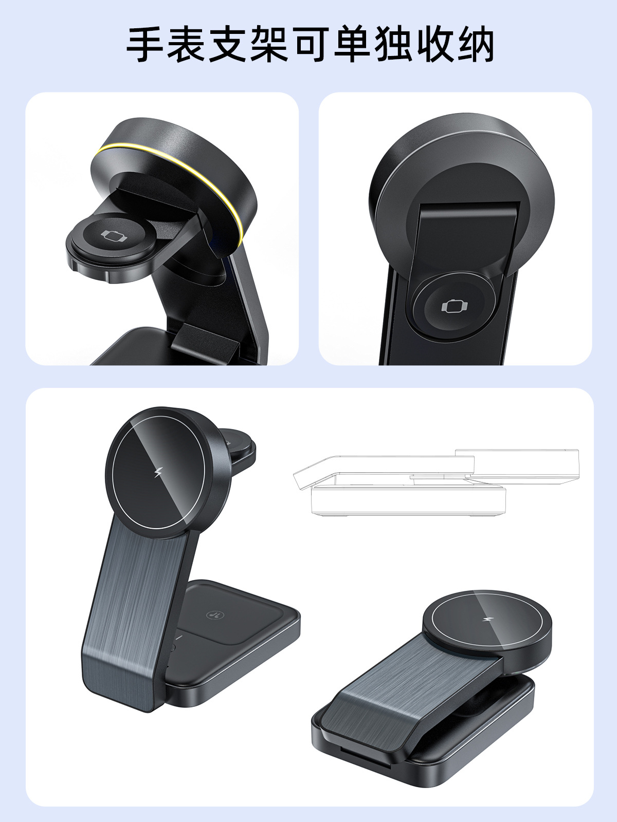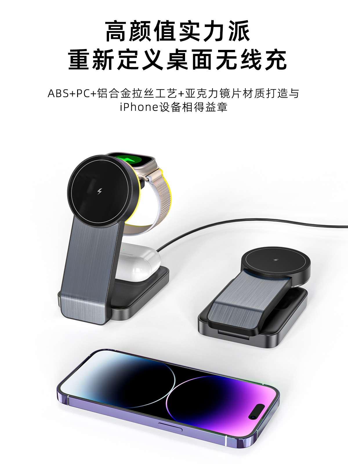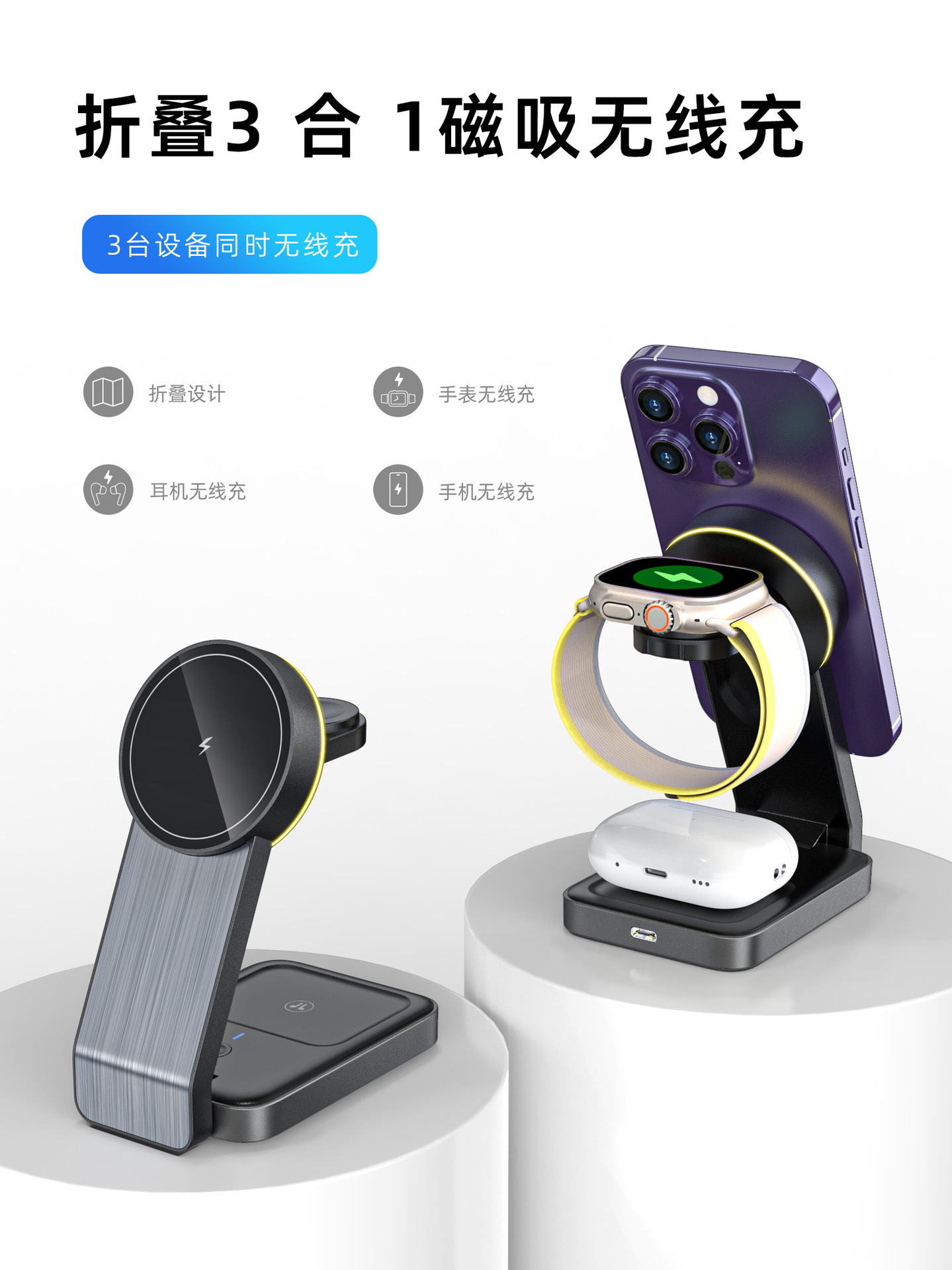 Nuevo soporte de carga inalámbrico plegable Cuatro en Uno transfronterizo para el reloj de auriculares para teléfonos móviles Apple tres en uno de carga inalámbrica