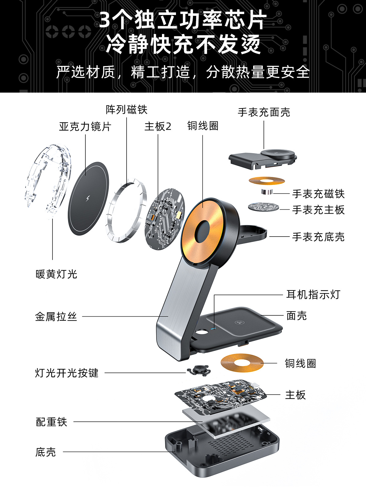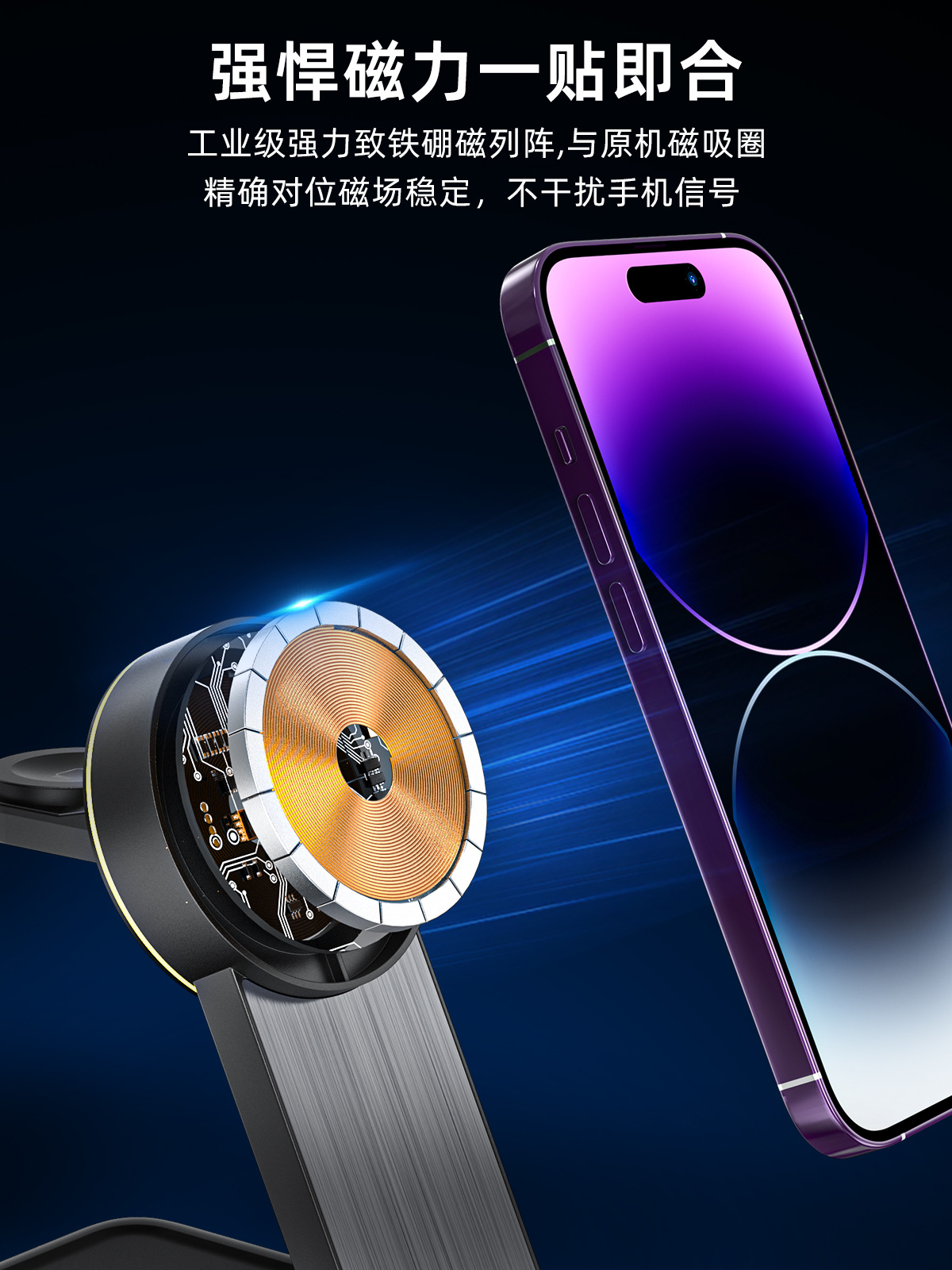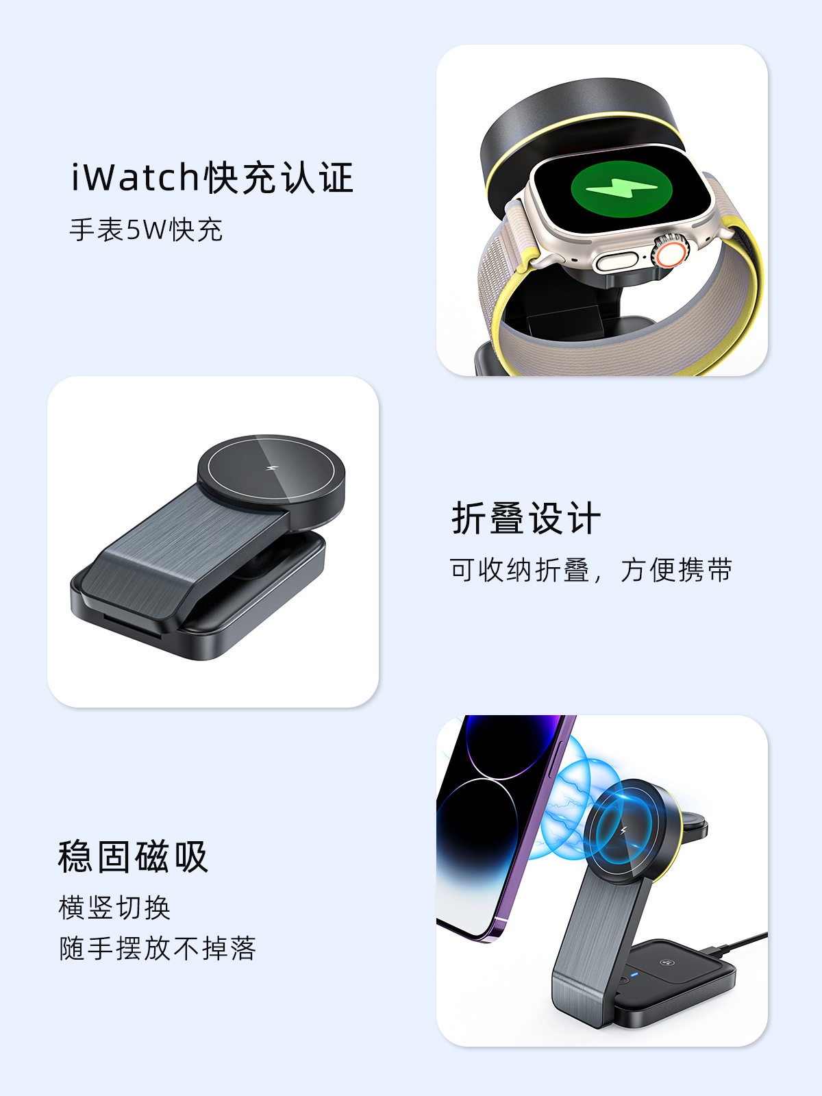 Nuevo soporte de carga inalámbrico plegable Cuatro en Uno transfronterizo para el reloj de auriculares para teléfonos móviles Apple tres en uno de carga inalámbrica