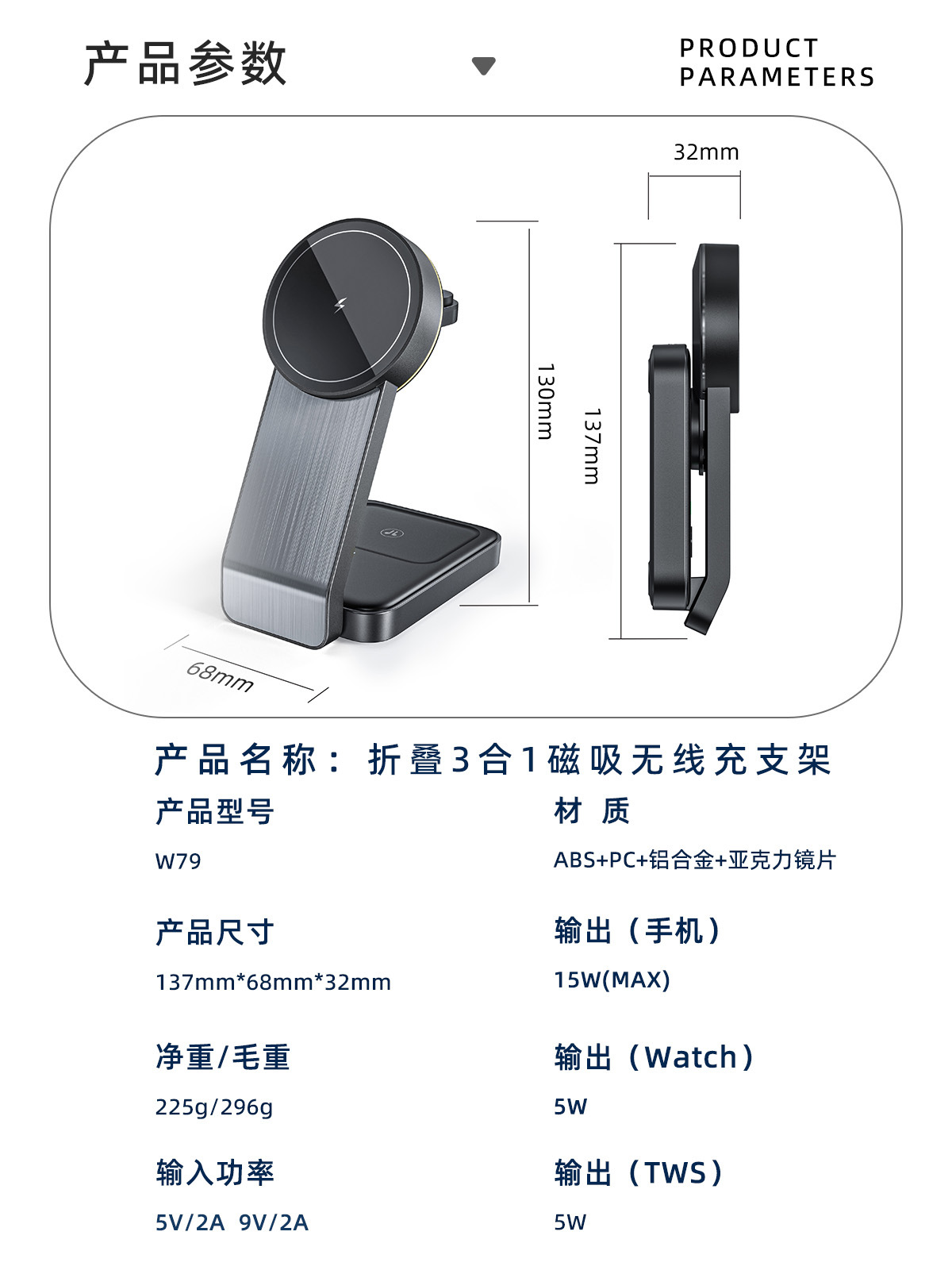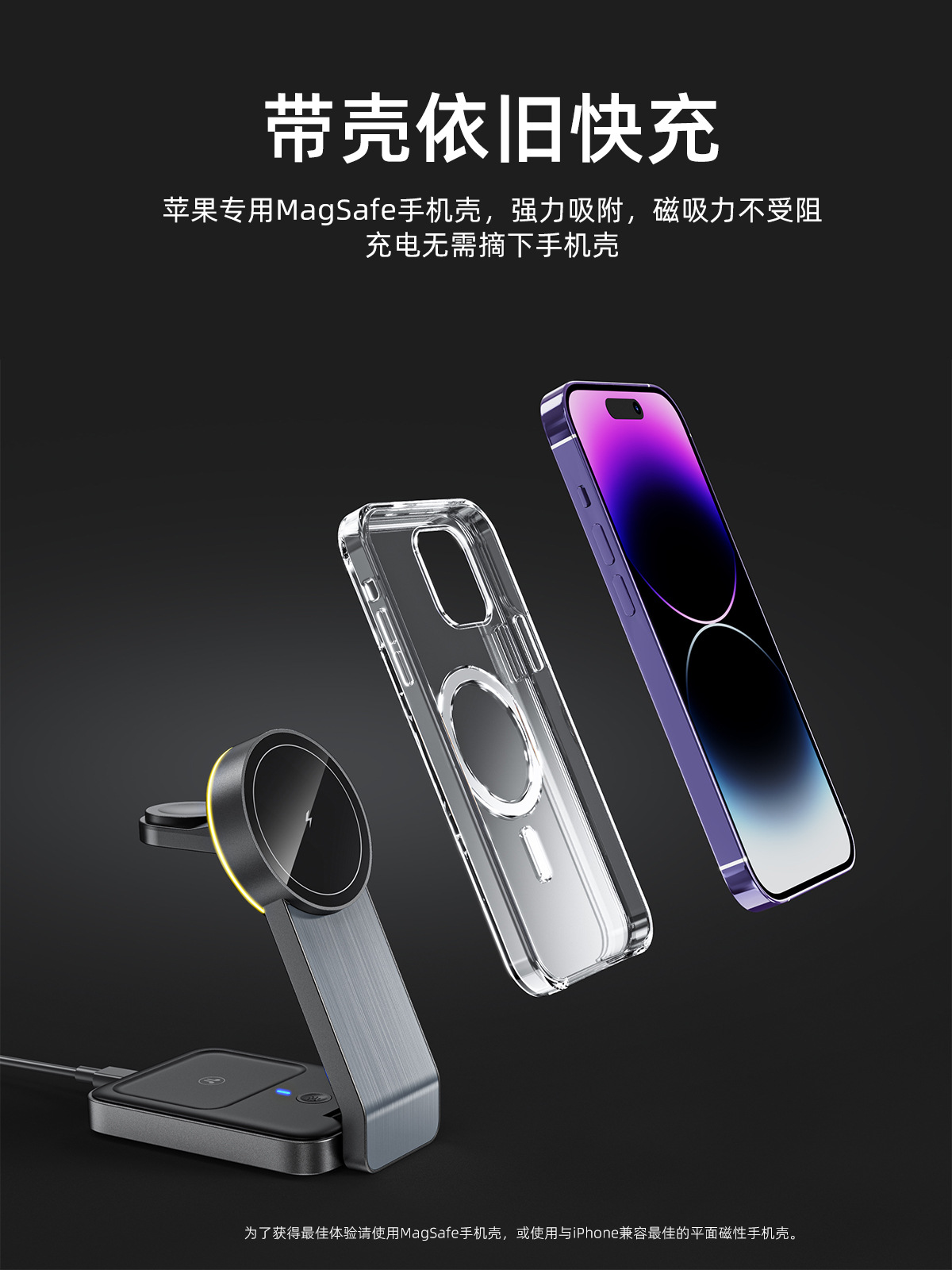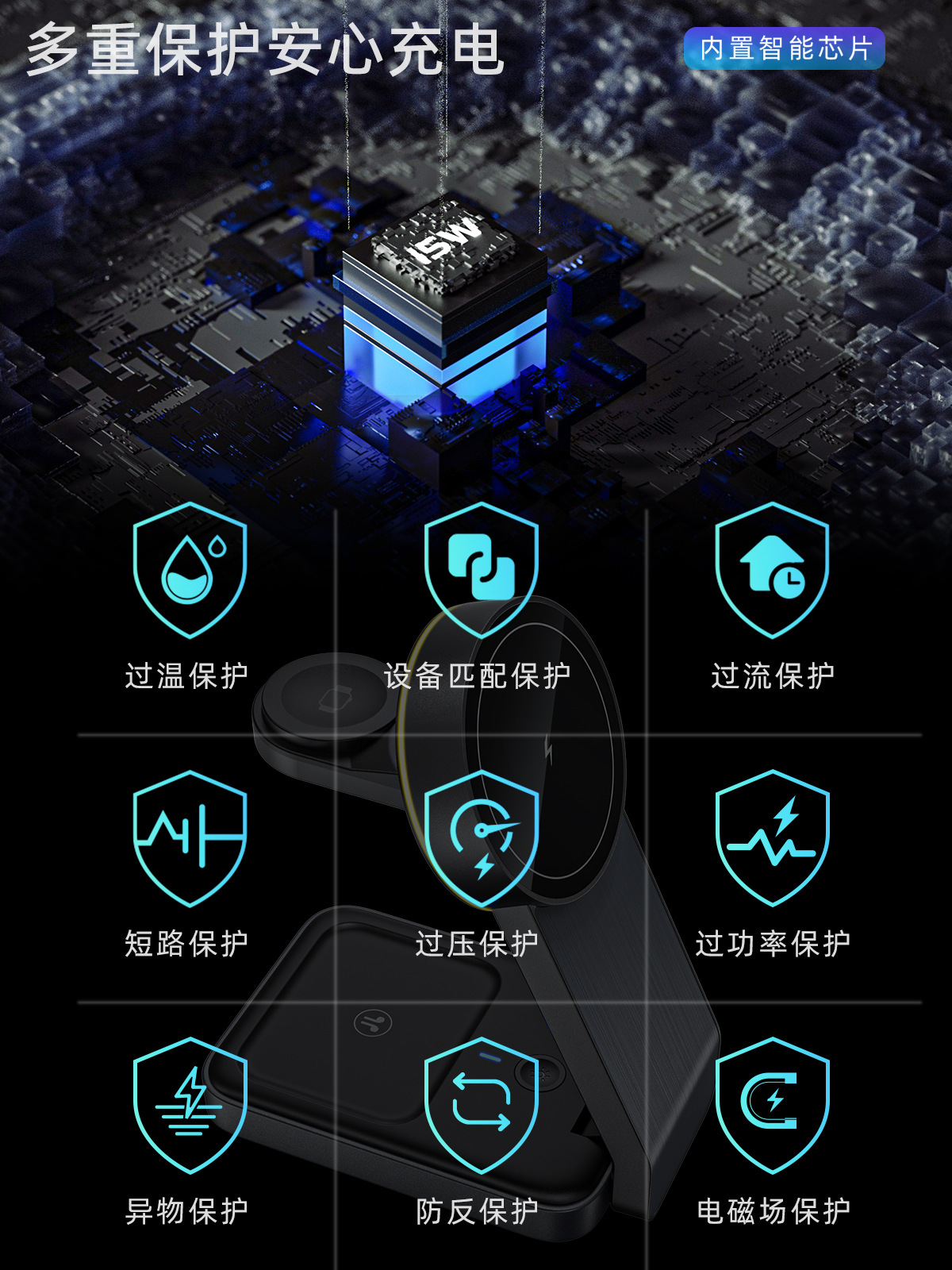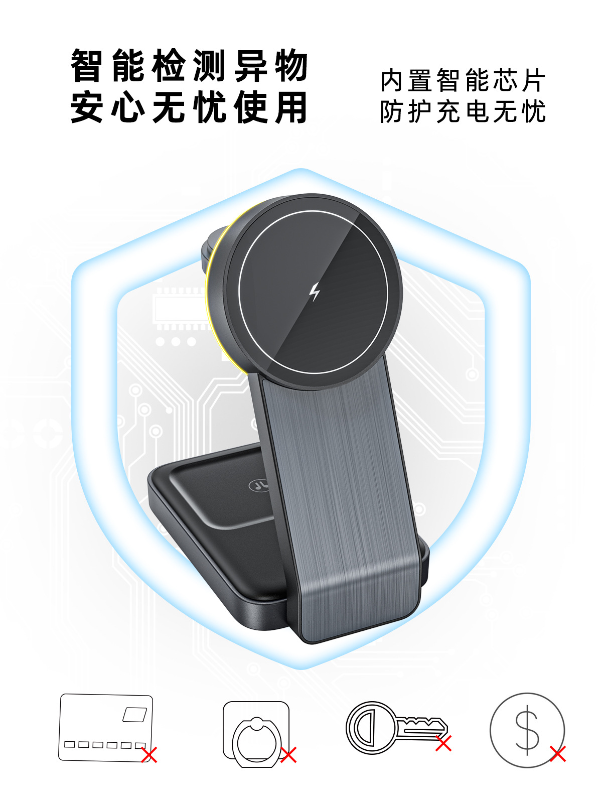 Nuevo soporte de carga inalámbrico plegable Cuatro en Uno transfronterizo para el reloj de auriculares para teléfonos móviles Apple tres en uno de carga inalámbrica