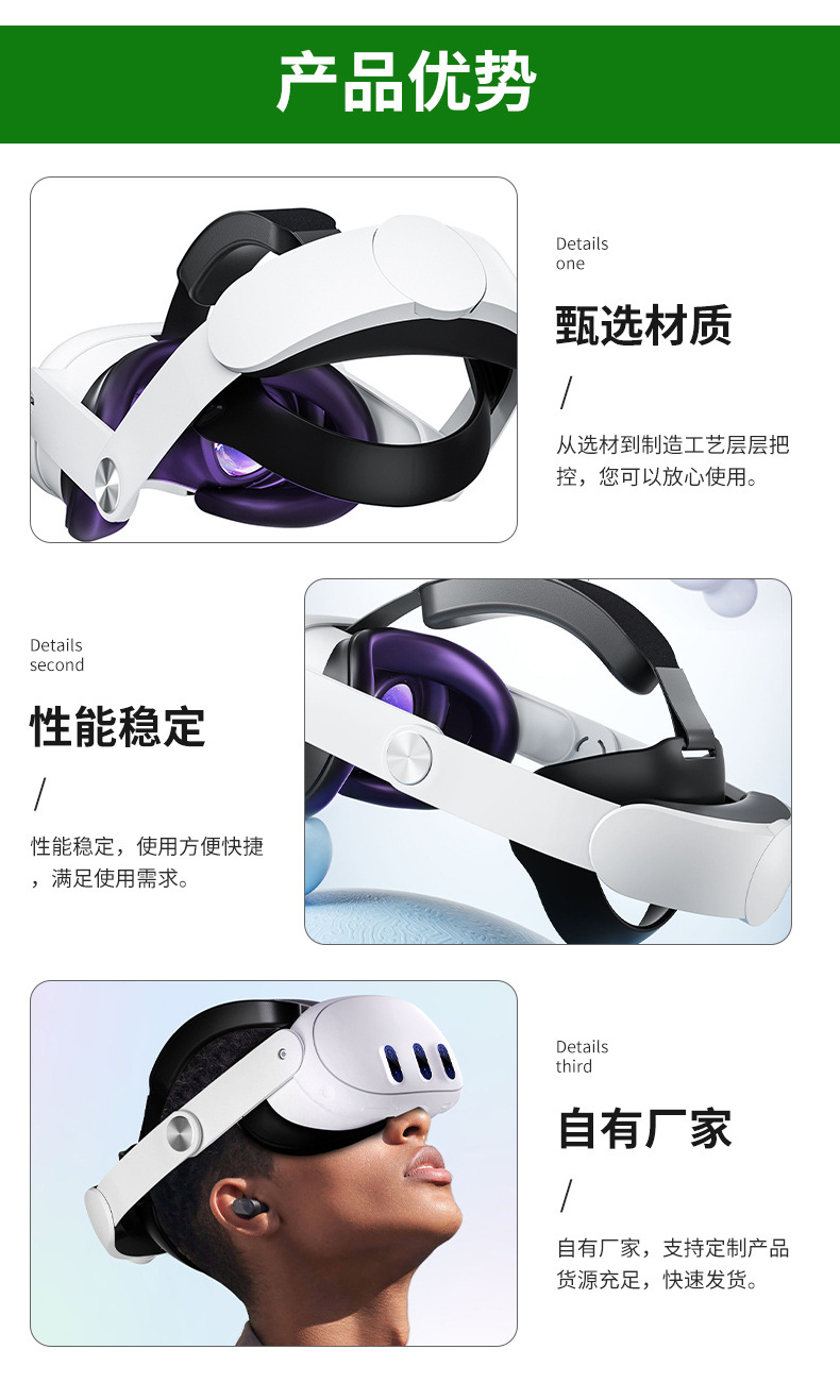 Oculus quest3 cabeza desgaste VR cabeza desgaste gafas VR accesorios cómodo reemplazable ajustable desgaste de la cabeza