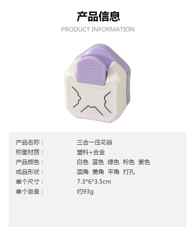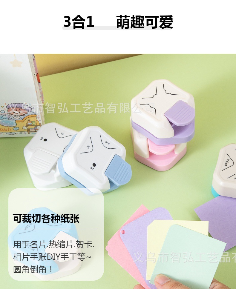| Colores | Tarjeta de papel rosa: tres en uno/ángulo plano,Tarjeta de papel púrpura: tres en uno/hermoso rincón,Tarjeta de papel verde: tres en uno/esquinas redondeadas,Tarjeta de papel azul: tres en uno/esquinas redondeadas,Tarjeta de papel azul claro: tres en uno/filete perforado,Tarjeta de papel blanco: tres en uno/punjado redondeado |
