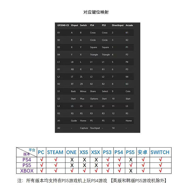 ·选择5种输入模式:XInput,任天堂Switch, PS4, PS3和键盘