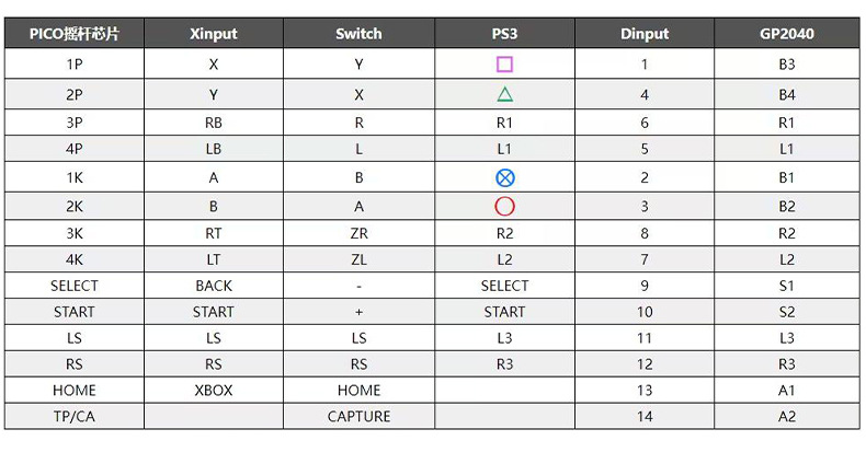 在插入摇杆时按住以下按钮开机将会切换模式,切换模式掉电也能保存。