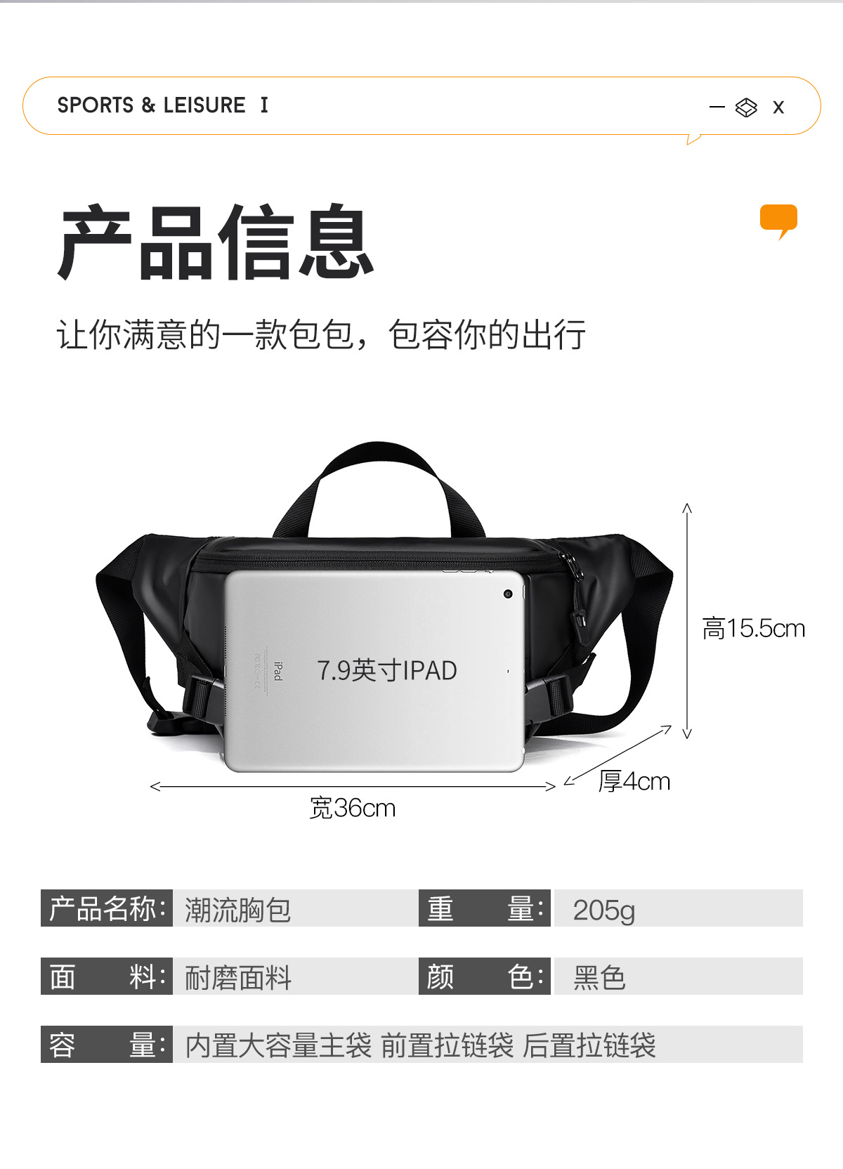 2023 Otoño e Invierno nueva bolsa de pecho de los hombres deportes funcional cintura bolsa casual hombro mensajero bolsa multifuncional bolsa al aire libre
