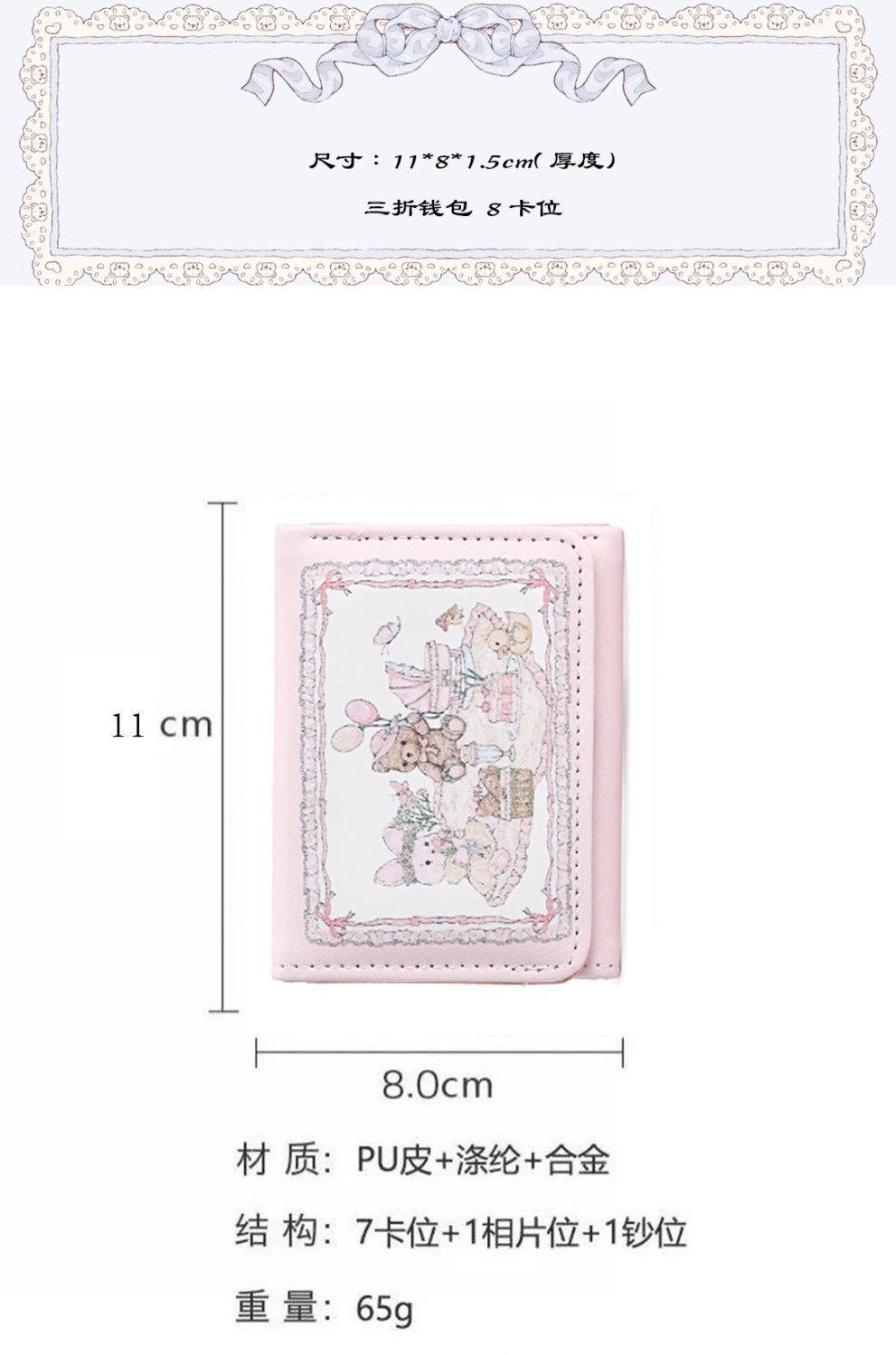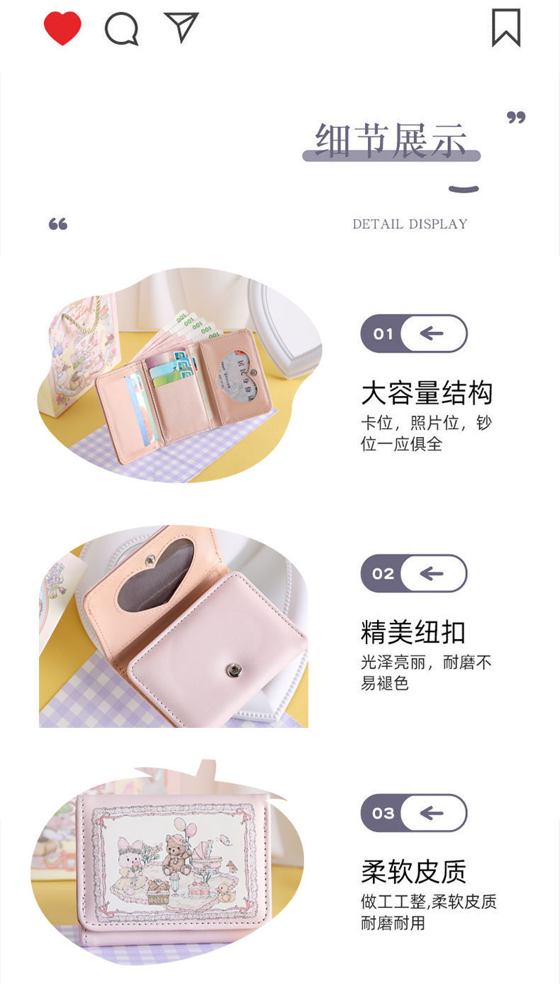Chica sueño Primavera Picnic serie conejo oso billetera lindo diseño original anti-desmagnetización multi-tarjeta magnética hebilla